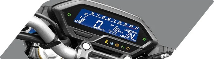 フルLCDメーターには、回転数、燃料計、シフトポジションに加え、