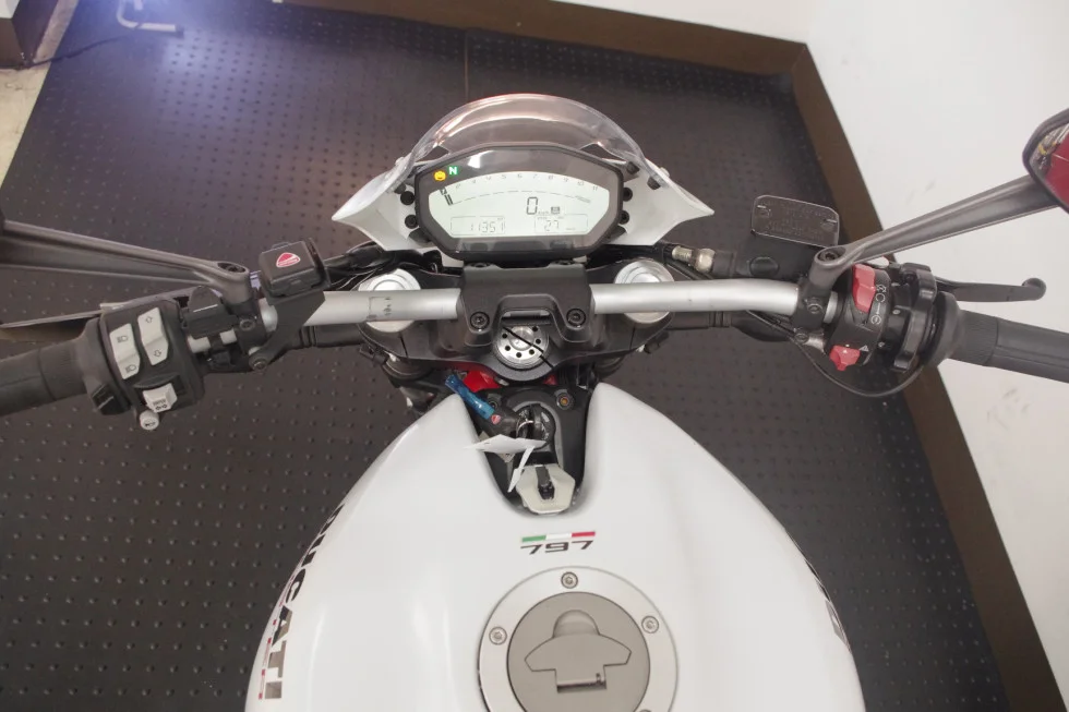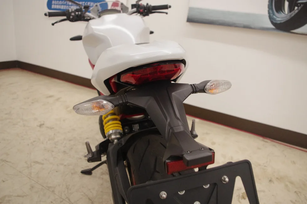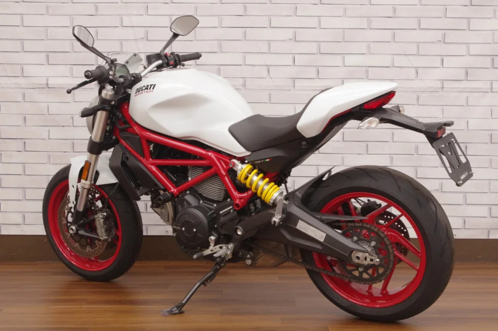 L型エンジンで大量排気の為低い音質で、低速トルクが強く街乗りも得意で、高速道路上では797ccというパワーとDUCATI特有のデスモドロミック機構により機敏な加速力が魅力です!