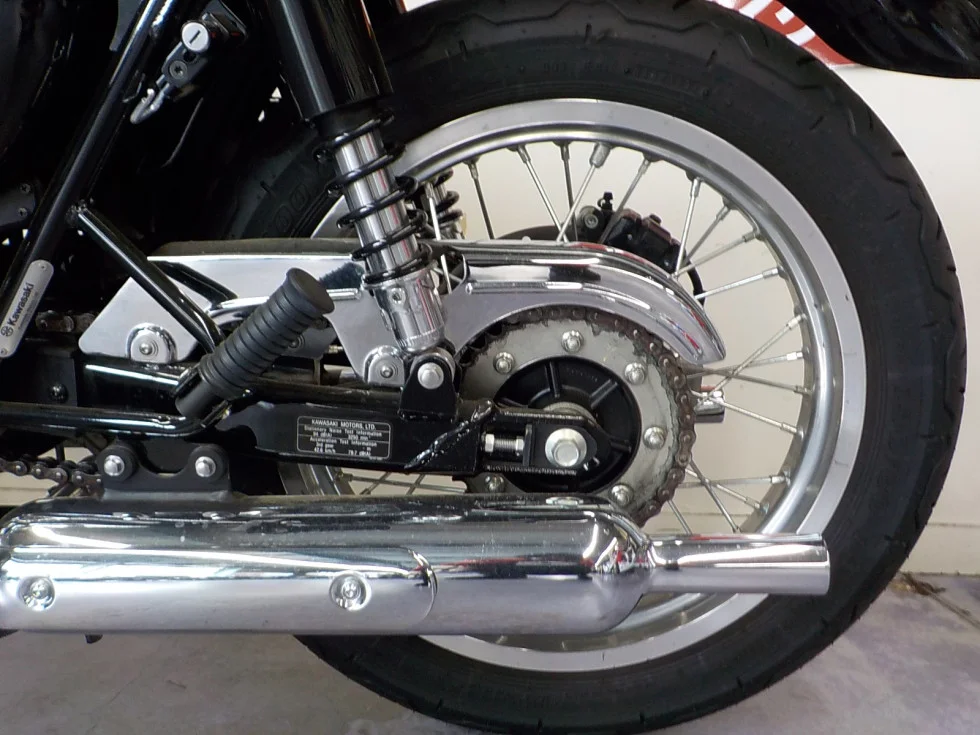 現代では珍しい銀鏡塗装のタンク、手塗りのエンブレム、シート加工などカワサキの伝統の想いが散りばめられています。