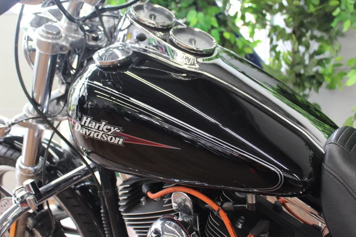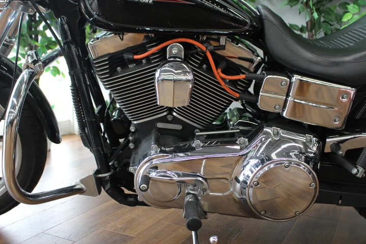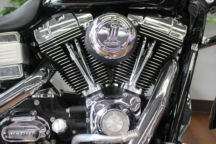 ロー&ロングのスタイルとブルバックハンドルバー、ミッドコントロール(フットペグ)が特徴で、ダイナ特有の走りを感じさせてくれるモデル!