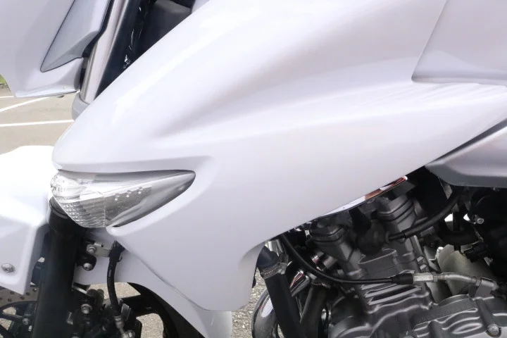 250ccクラスとしては比較的重めな車重だが車体の重心位置が低くハンドルが自然な位置にあるので取り回しは良好!
