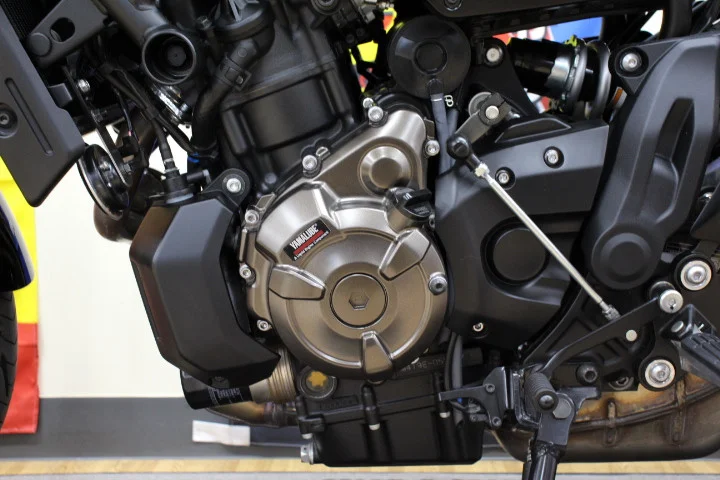 XSR900との違いとしてXSR700は二気筒のエンジンを搭載し車重も10Kg軽くなっております。