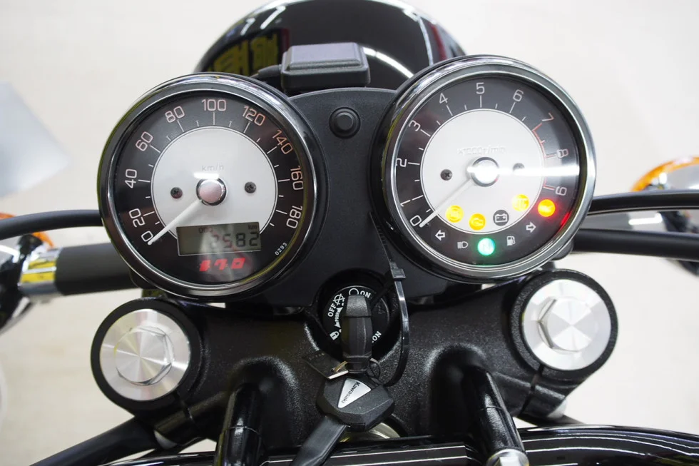 W800をベースとしながら、メグロブランドのエンブレムの装備など随所に差異が見受けられるモデルとなります。