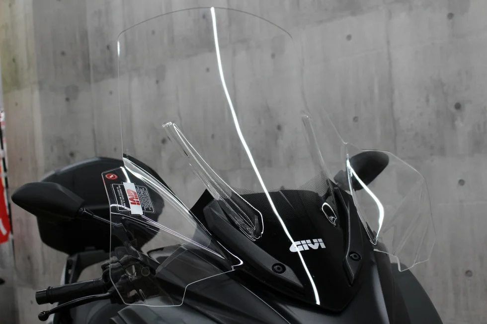 1)高速走行も快適なロングスクリーン!