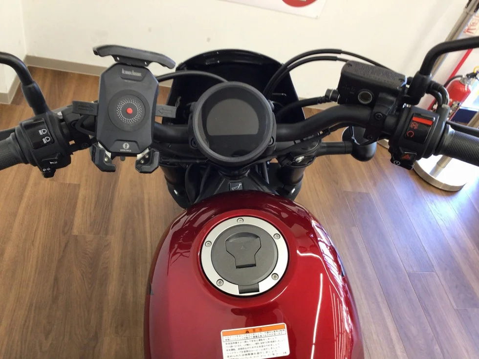 ツーリングなど初めての場所でもスマホ装着し快適ツーリングがお楽しみ頂けます。充電も出来るのがうれしいポイントです!