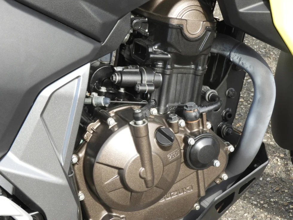☆VストロームSXは、油冷単気筒エンジン搭載車ならではの軽さ。水冷2気筒エンジンを搭載するVストローム250が車両重量191kgなのに対し、Vストローム SXの車重はなんと164kgを実現。ハイパワーエンジン+車体の軽さにより、軽快なライディングを可能としています!