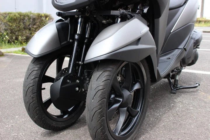 通勤に少し距離がある方やゆっくり遠出したい方におすすめの一台です!同排気量クラスの中では車重が重いですが、前2輪と合わせてちょっとした悪路でも安心できる安定感。低走行で足元もきれいな車両です!