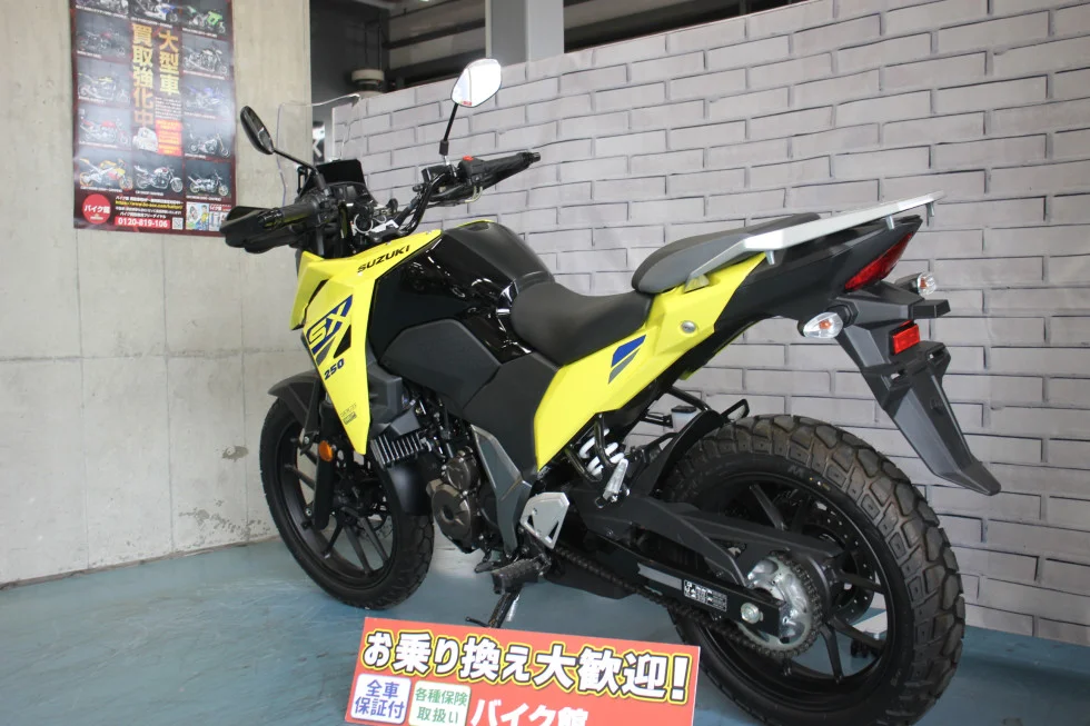当店のVストローム250SXはまだまだ走っていない車両で、タイヤを含む消耗品は7割残っており状態もかなり良いことでこれから先しっかりと人生を豊かに彩ってくれる車両です!