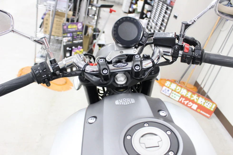 カスタムは多数ありハリケーン製ハンドルにてハンドル変更、パフォーマンスダンパー、エンジンスライダー、ベビーフェイス製バックステップ、トップケースなどカスタム盛りだくさんな1台です!!