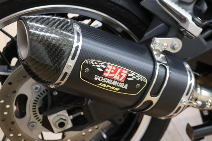 ヨシムラマフラーはネオレトロな角形エンドで、よりスポーティな印象に !
