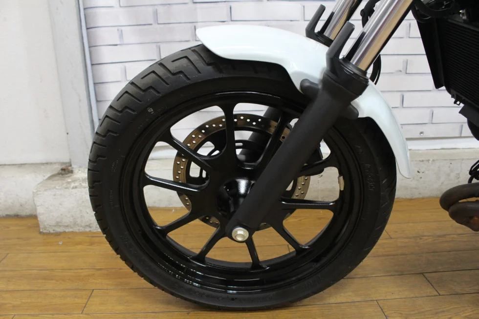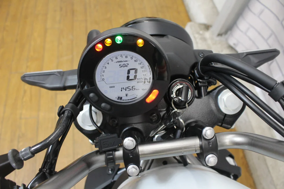外装タンクは傷、凹みもなく、走行距離1,455kmと比較的低走行車両の為車体状態良好です!スペアキーもあり、紛失時でも安心!シート高は735mmと低く足つき良好!またアメリカンにしては重量が軽めで取り回しも楽々。