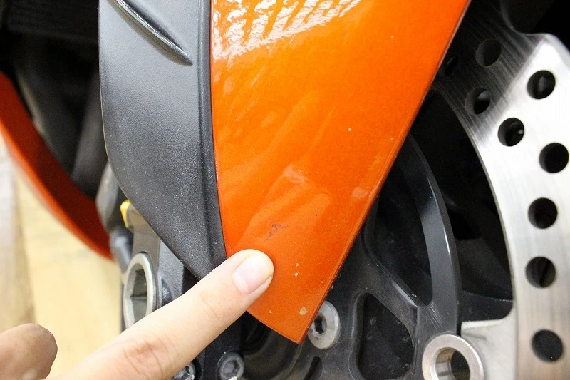 右側に転倒傷や一部小さな塗装のはげなど、年式相応の使用感はございますが外装の艶などはしっかり残っております。エンジン始動も良好です。