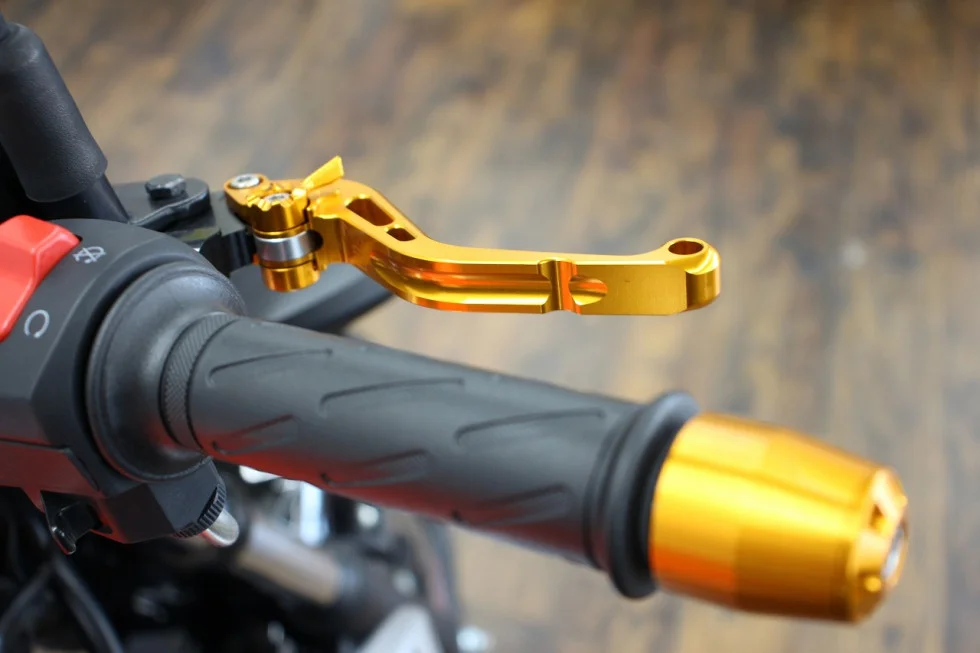 1)デザイン性と扱いやすさが魅力のU-Kanaya製の調整機能付きビレットレバー装備。