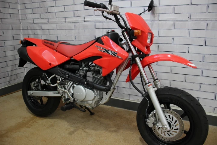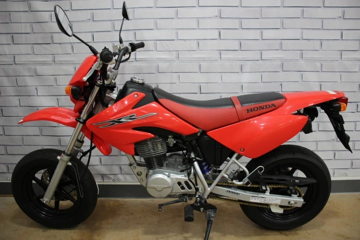 カスタムベースとしても楽しめるXR100モタード!前後ディスクブレーキ標準装備は当時は非常に珍しい高価な装備でした!まだまだパーツも多く遊べる1台です!