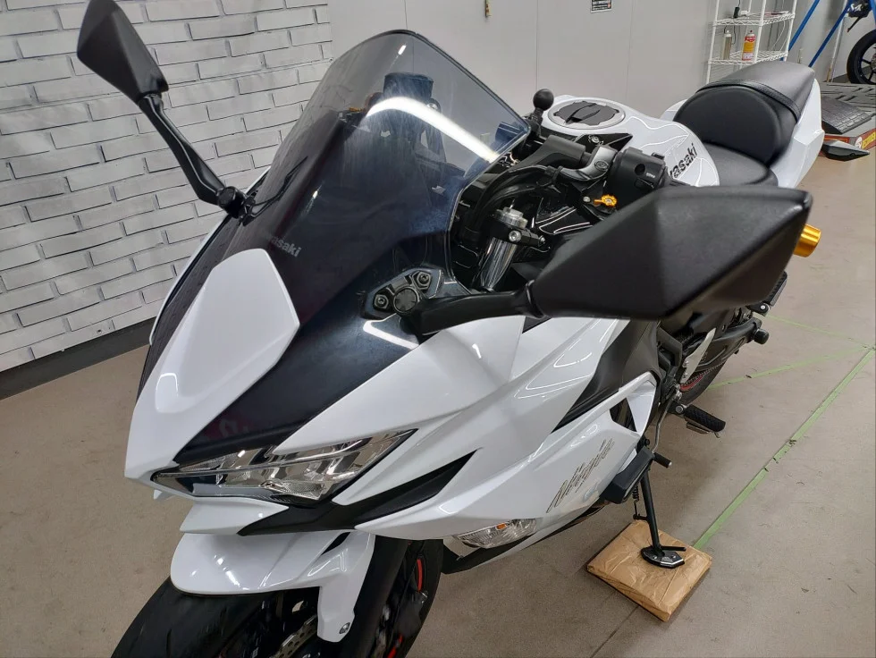 純白のニンジャスタイルの車体に目を惹かれる1台です。