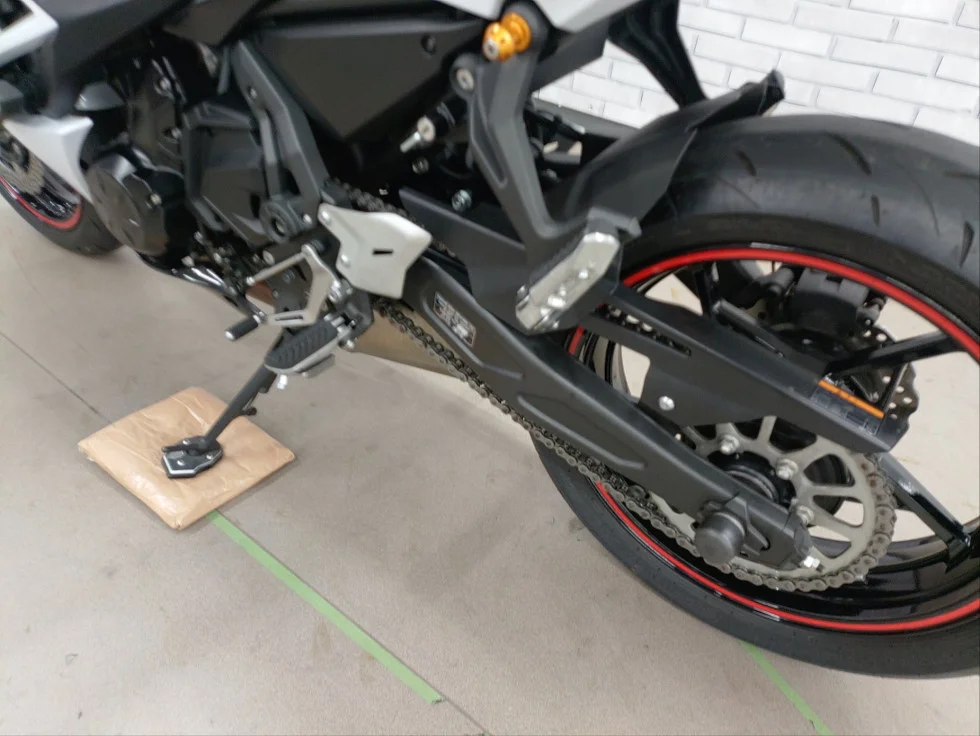 安定した停車のためのサイドスタンドプレートや、リアシートへの荷物固定のための荷かけフックなど、ちょっとした移動の際の便利なカスタムがなされています。