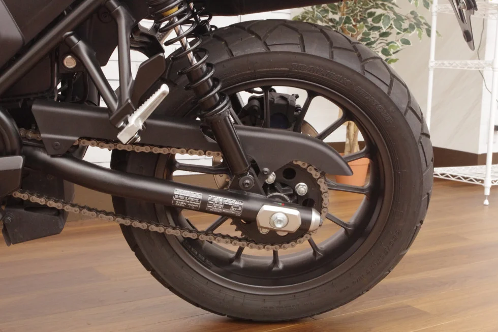 タイヤ残溝は前後とも7分山くらいです。シート高は790mmとオフロードバイクに比べ低く取り回し良好です!