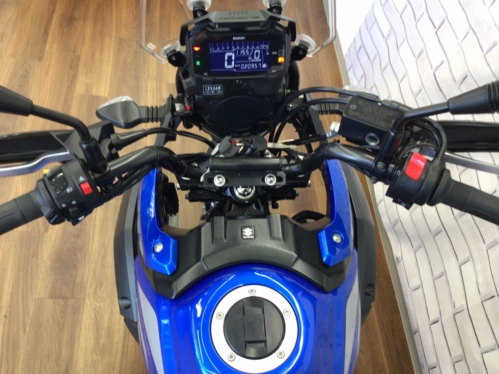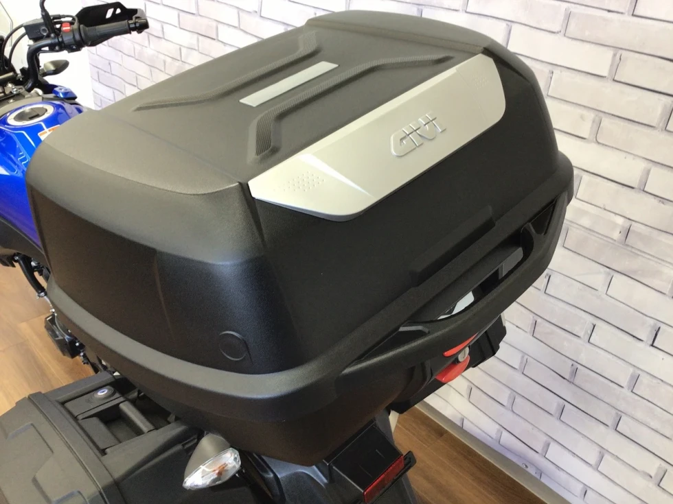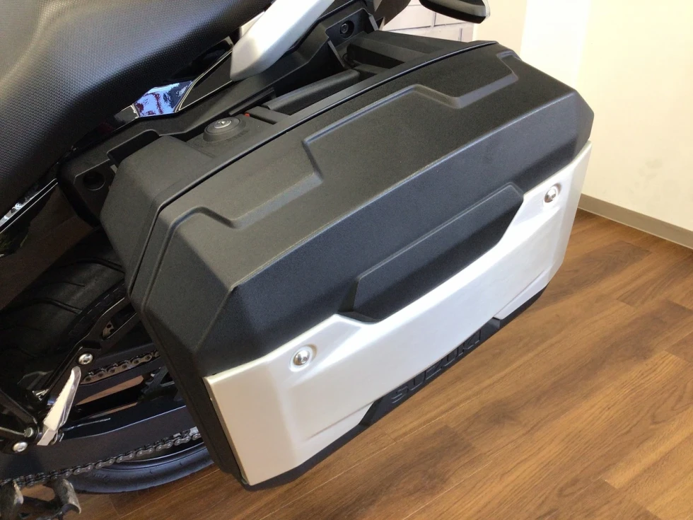 スズキ純正オプションのサイドパニアに大容量のGIVIのトップケース付きで積載性抜群!