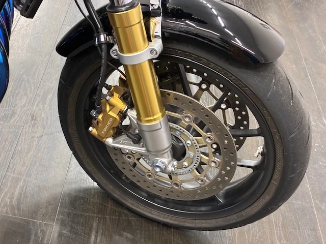 専用設計のスイングアームをはじめ、ラジアルマウントブレーキキャリパーや前後17インチのタイヤ、リザーバータンク付きのリアショックなど、スポーツ走行に特化した装備満載の一台!