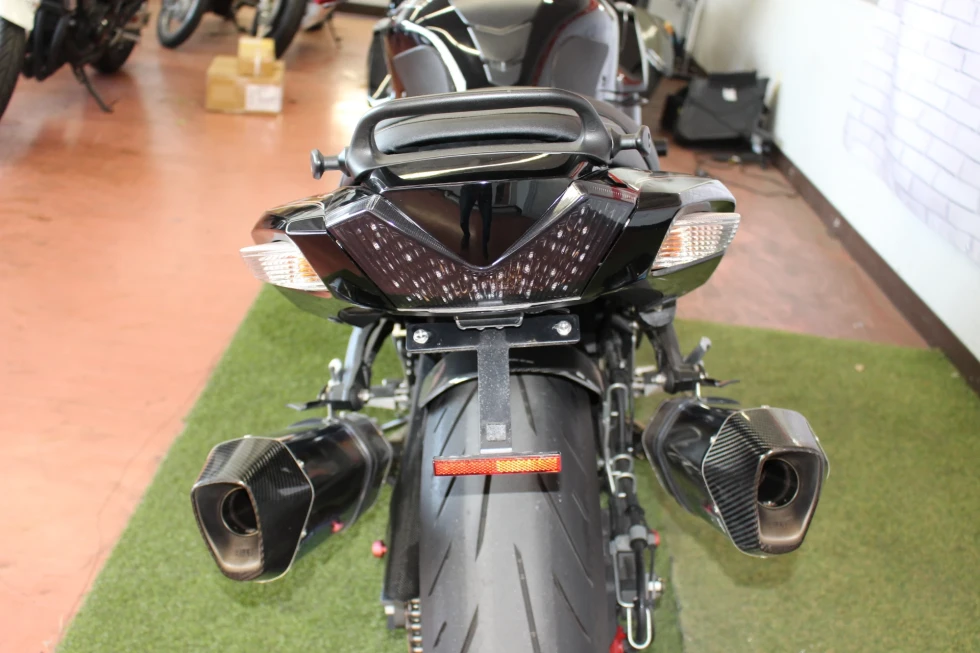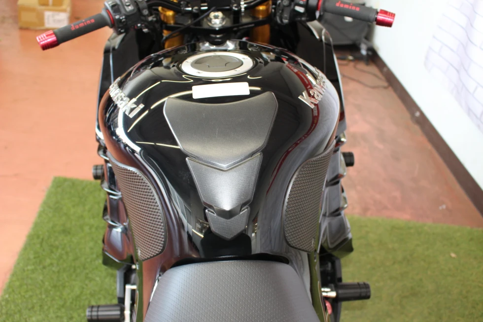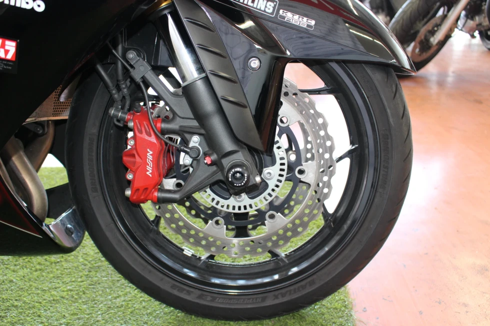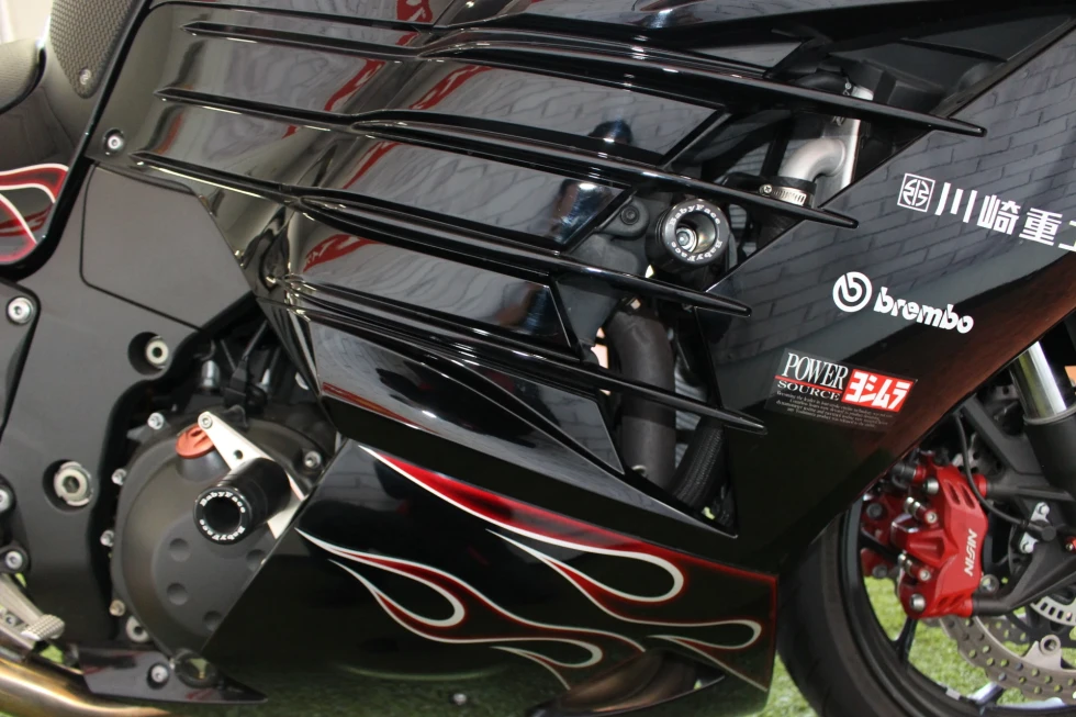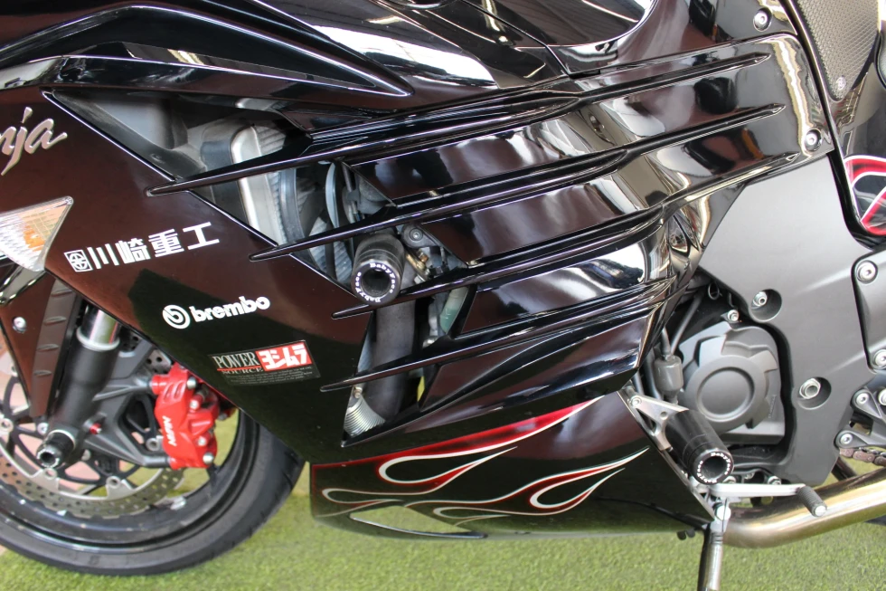 オーリンズサスペンション、ヨシムラマフラー、ハリケーンハンドル、ベビーフェイススライダー、ゼログラビティシールド、フェンダーレス装備!