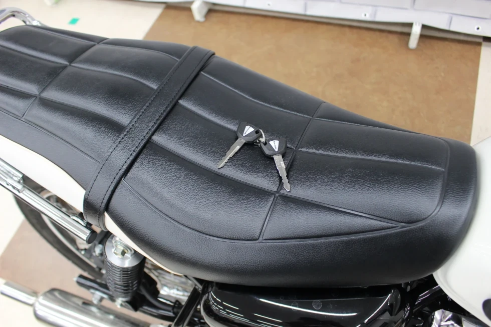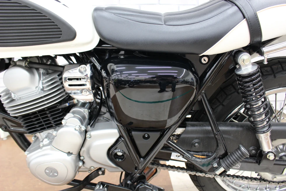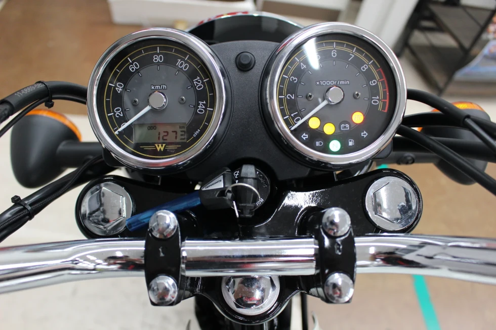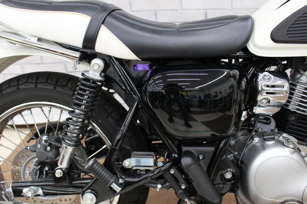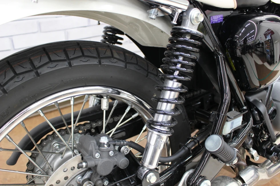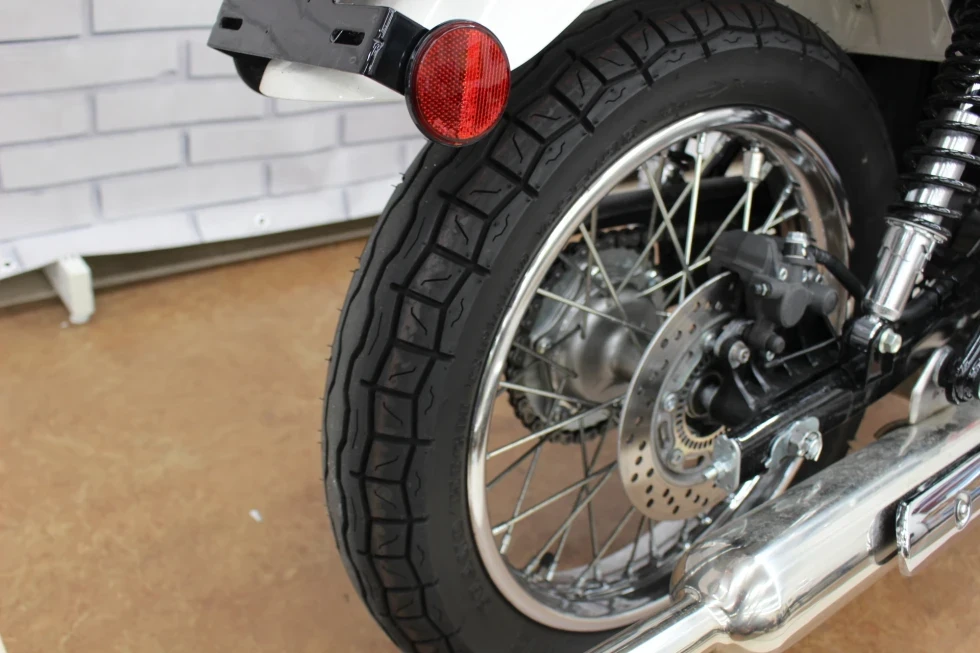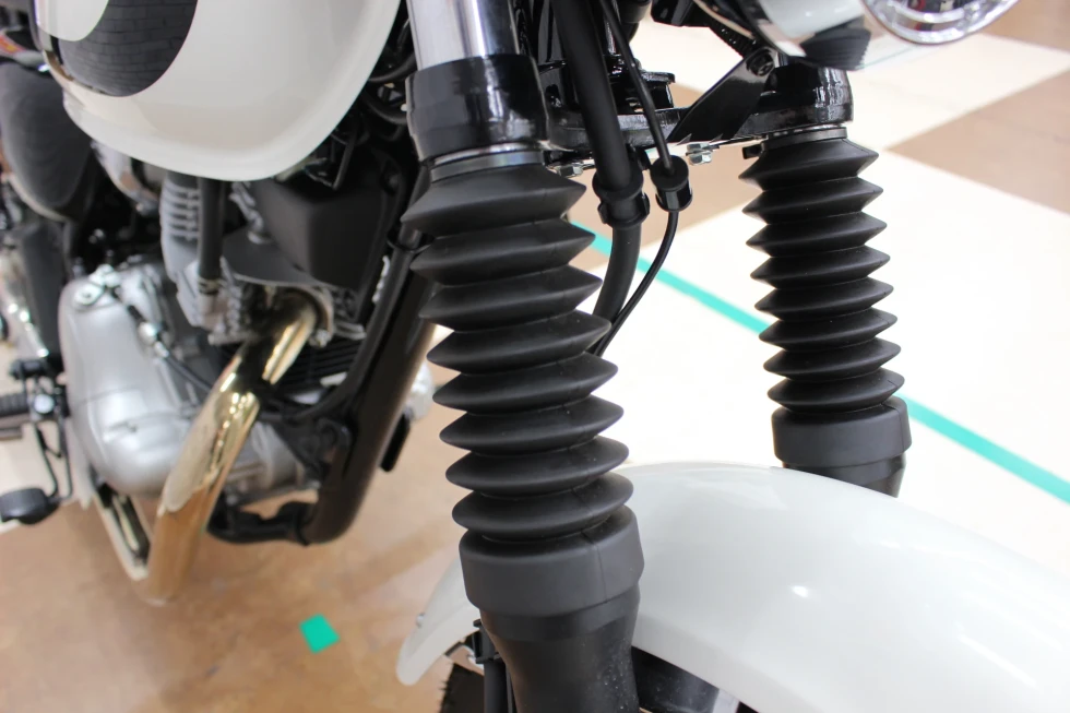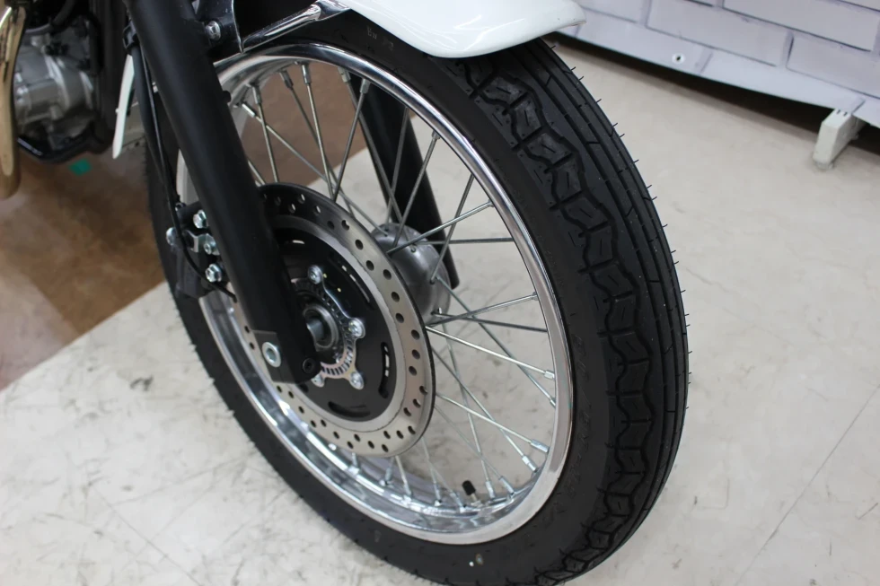 ・フロント18インチ/リア17インチのホイールは、スチールスポークタイプで、蛇腹式のフォークカバーなどがレトロスタイルを演出!!