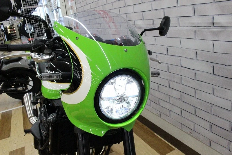 KAWASAKI「Z900RSCAFE」年モデルです。かつてのZ1やZ2をオマージュして、クラシカル風味の最新テクノロジーでつくられた最新モデルで、7年連続大型バイク販売台数1位を獲得している大人気モデルです!こちらの車両はZ900RSをベースに、ビキニカウルとローポジションのハンドル、専用シートを採用した、カフェレーサースタイルのバリエーションモデルです。