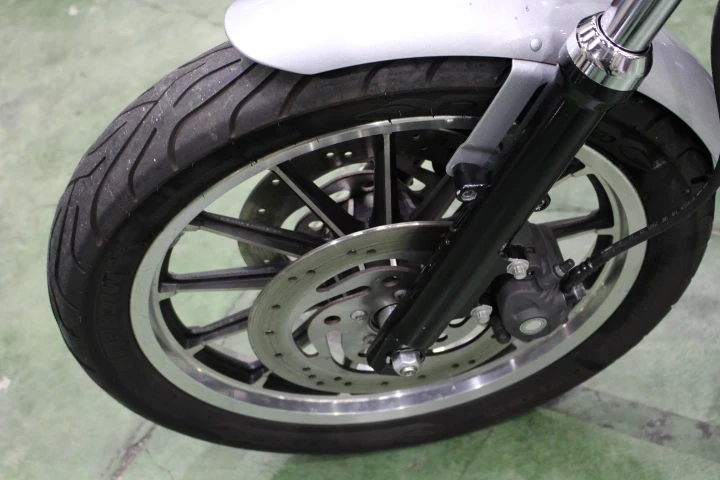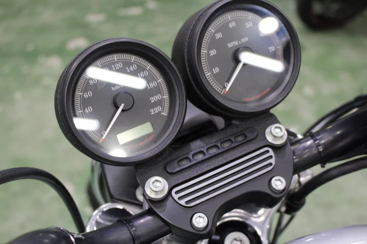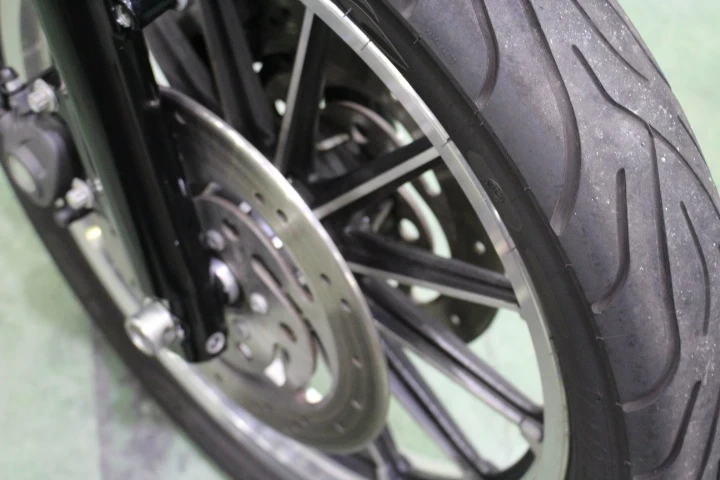 2)XL883シリーズの中でもスポーティさの際立つタコメーターとFダブルディスクブレーキ