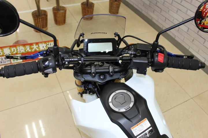 イモビアラーム、キャリア、スクリーン、マウントバー、電源、レバー、グリップ、アンダーガードなど嬉しいカスタムが満載!
