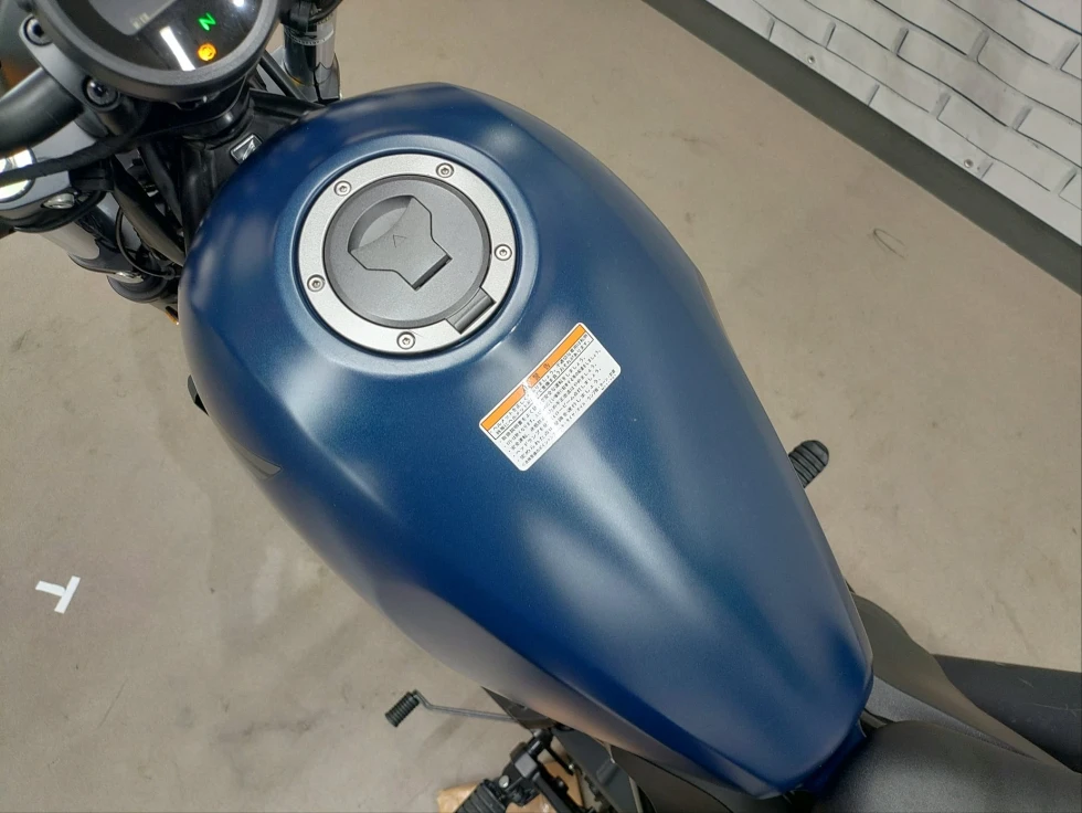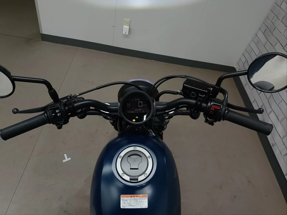 丸型ヘッドライトやワイドなハンドル、ロー&ロングのプロポーションが特徴的なレブル。