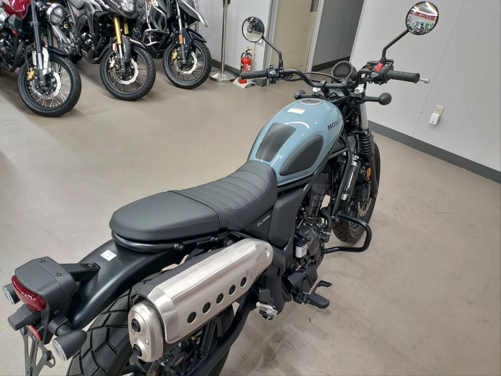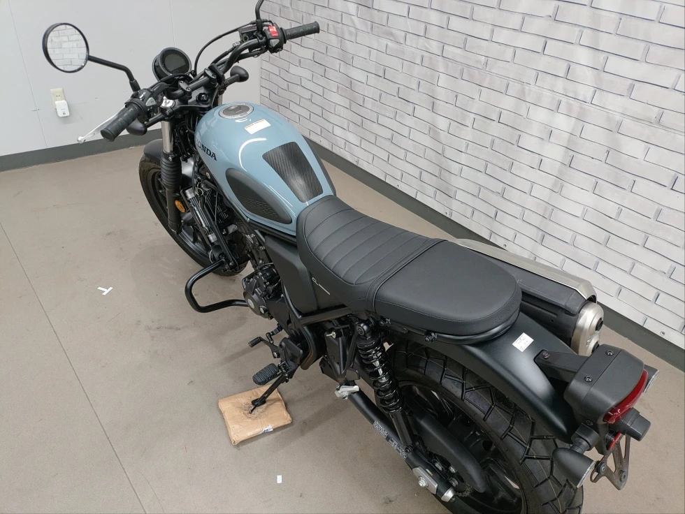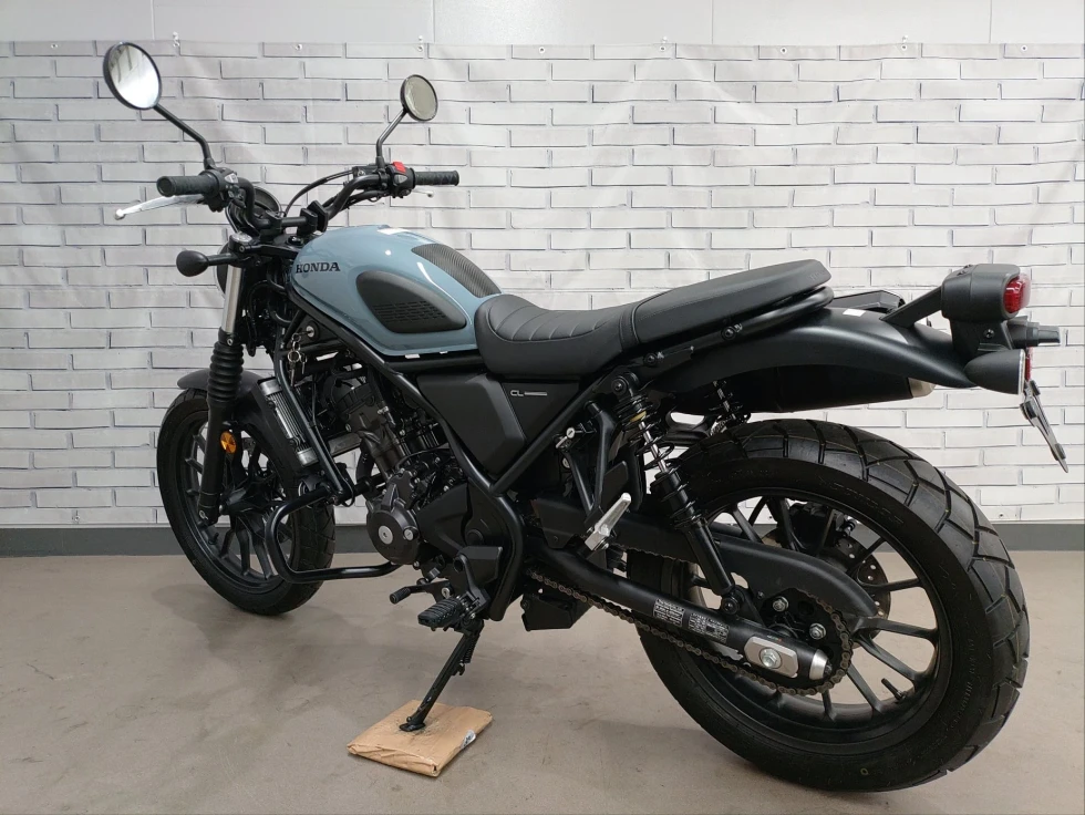 CL250はアップタイプマフラー、ワイドハンドル、フラットシートを採用し、クラシックかつ現代的なスクランブラーデザインを表現しています。