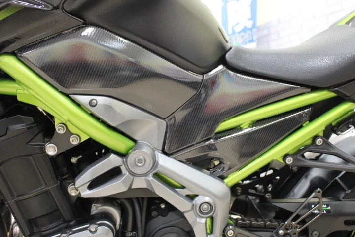 スモークスクリーン、フロントアクスルスライダー、エンジンスライダー、バックステップ、USB、ETC、ラジエーターカバー、サイドカバーはカーボン調フィルムを貼付済み!