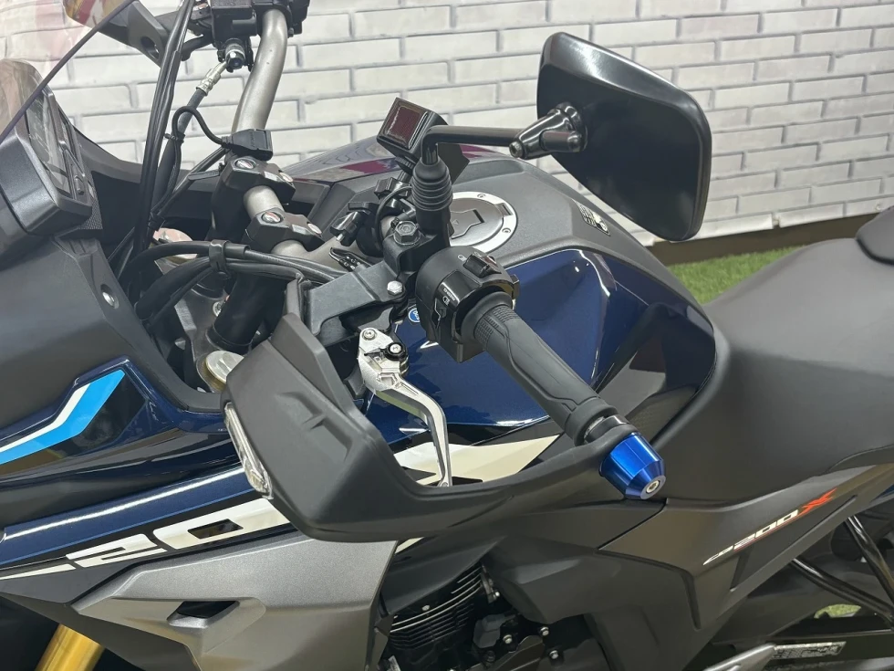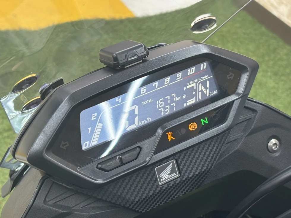 なんとあのMT-09 TRACERのスクリーンを一部加工し取り付け!!ツーリング時の風除け効果は見ての通り絶大でしょう!!