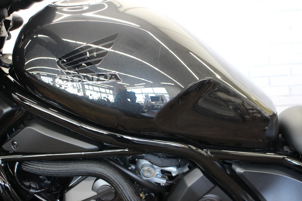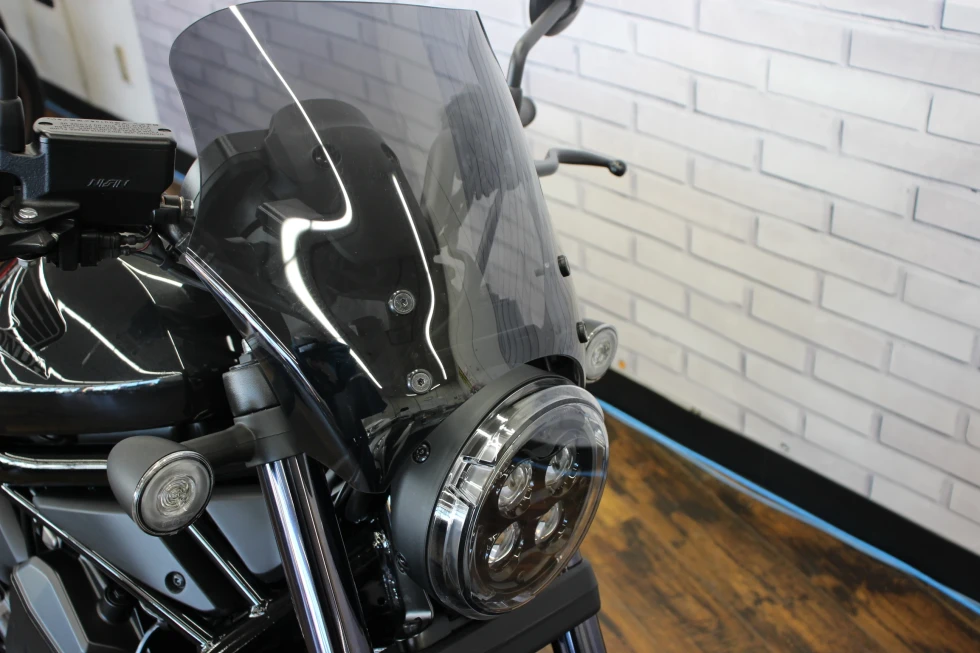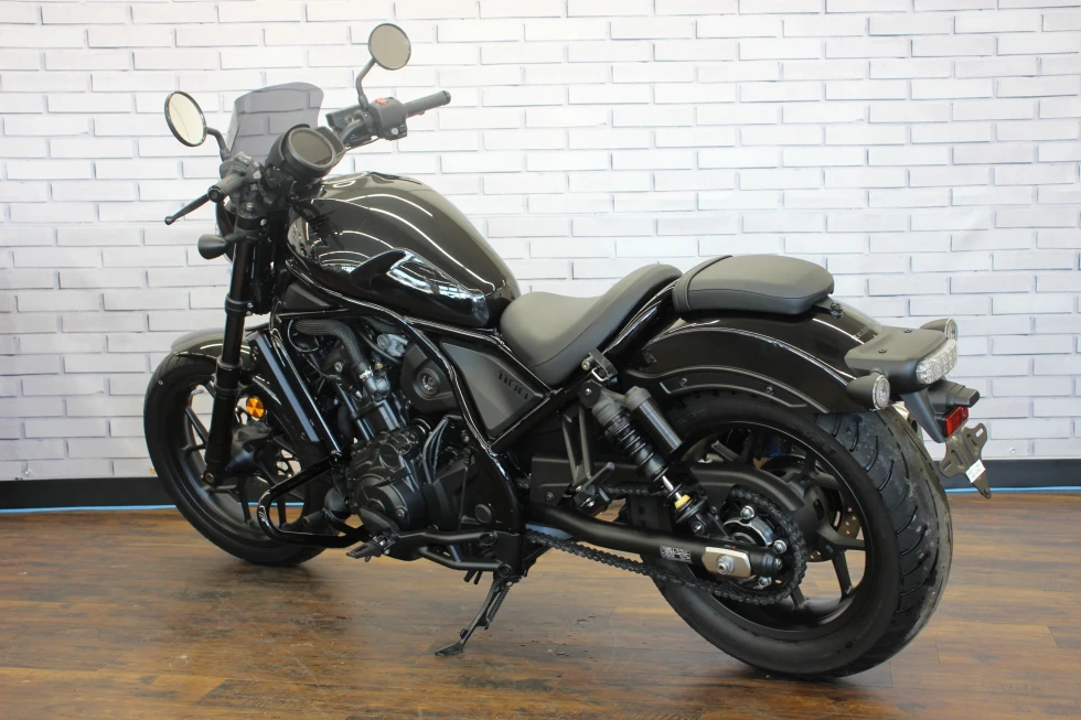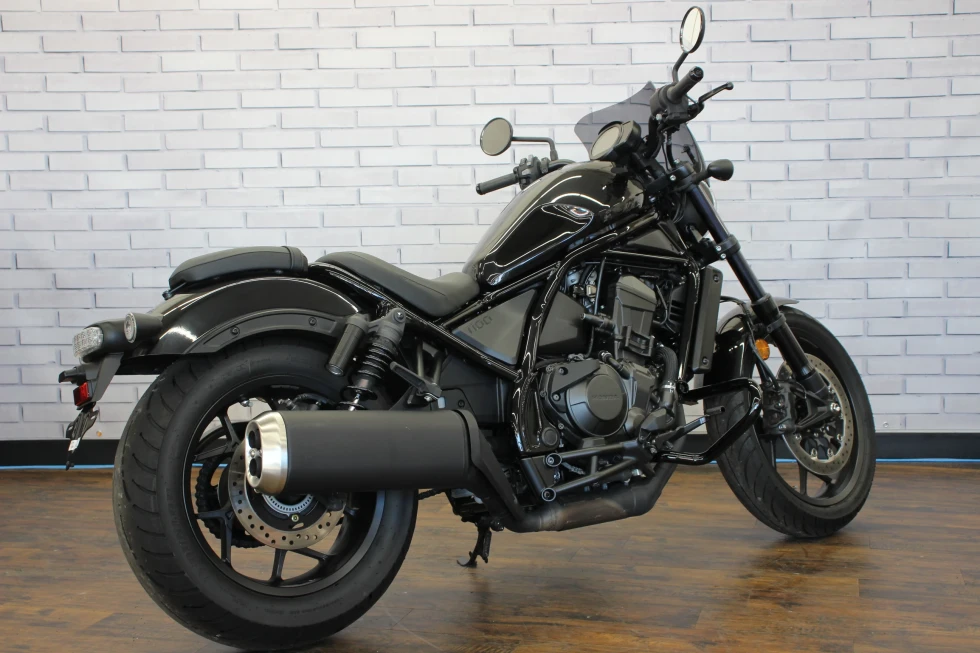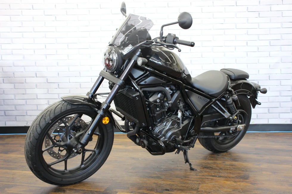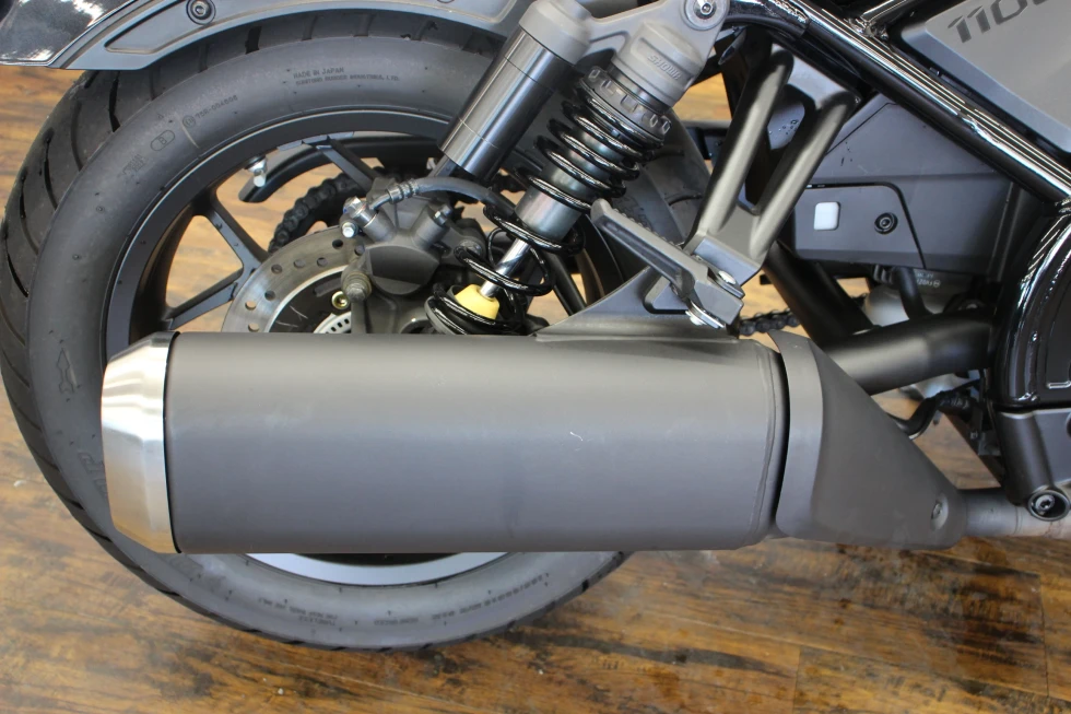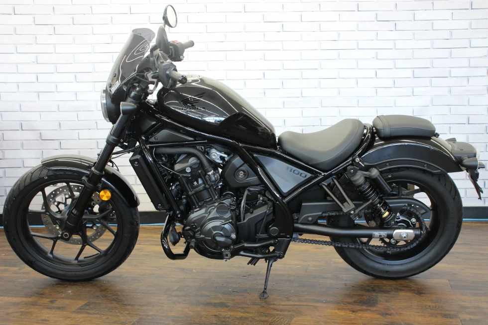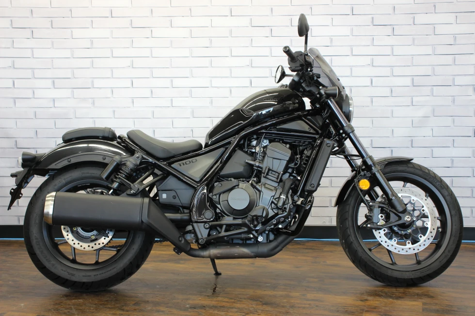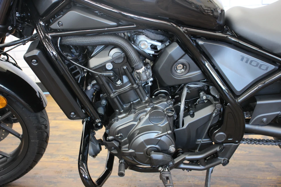 レブル1100(CMX1100)は、2020年11月に海外市場向けに発表されたクルーザーモデル。先行して発売され、日本でも人気を博していたレブル250(MC49)やレブル500の上位モデルとしての登場だった。排気量1,082ccの水冷並列2気筒OHCエンジンは、当時のアフリカツイン(CRF1100L)用をベースにしたもので、クルーザーモデルらしい低中速回転域を重視したセッティングがなされていた(バルブタイミングなどを変更)。また、アフリカツイン同様に、DCT(デュアルクラッチトランスミッション)搭載モデルも用意されていた。外観上は、2020年にマイナーチェンジを受けていたレブル250/500によく似ていて、LEDヘッドライトが点灯した状態は、ほぼ同じ。但し、レブル1100にはライトケースの外縁にポジションライトが配置されていた。ライドバイワイヤを採用し、ライディングモード選択やABS、トラクションコントロールなどを装備した。シート下には、USBタイプCの電源ソケットを備え、スマートフォン(当時の個人携帯用情報端末)の充電などを行うことができた。日本向けモデルは、2020年12月に発表され、DCT搭載モデルが2021年3月、マニュアルミッションモデルが同年5月の発売となった。2024年10月に、欧米市場でマイナーチェンジを受けた2025年モデルが発表された。これまで丸型だったメーターパネルは、角型の5インチフルカラーディスプレイを採用。ハンドルバーとステップの位置が見直され、シートもやや厚くなり、シート高は710ミリとなった。並列2気筒のエンジンは、圧縮比がこれまでの10.1:1から10.5:1にアップされた。2025年モデルは、2025年3月から日本市場でも発売された。