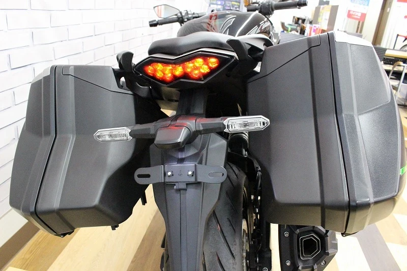 ・サイドパニアを装備しており、ツーリングモデル「Ninja1000」としては完成形に近い状態です!万が一の転倒に備えたフレームスライダーも装備しております。
