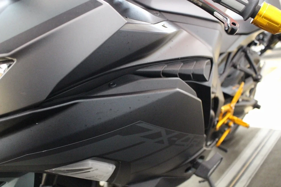 フロントはデュアルディスクブレーキ&倒立フォーク、リアは水平バックリンクサスペンションで優れた制動力と接地感を確保しています。