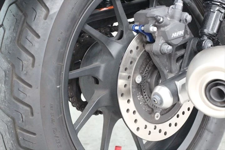 エンジンガード装備でもしもの立ちごけなどの時は車体へのダメージを軽減してくれます。