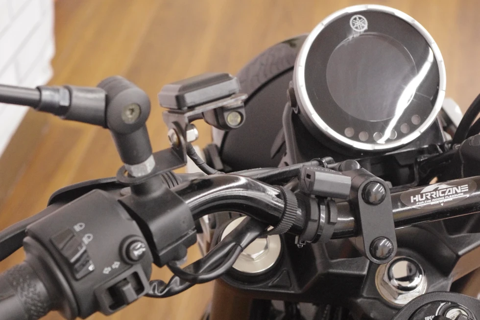 幅の狭いカスタムハンドルでスポーティなライディングポジションとなっています!