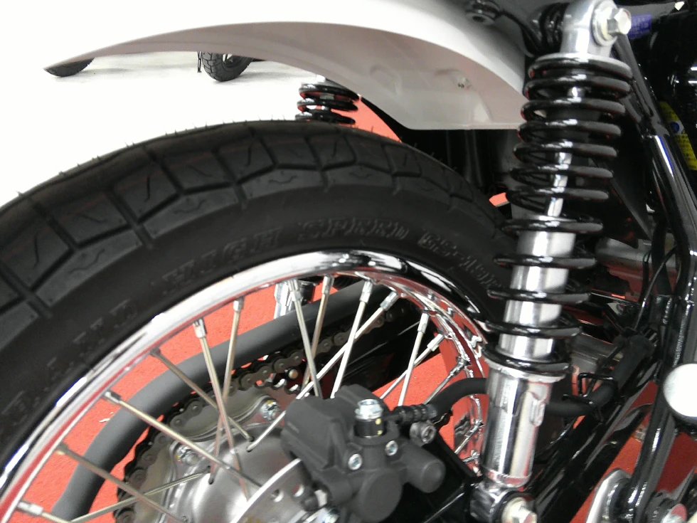 ・空冷単気筒で燃費も40Km近く走ります。タンク容量11リッターですので走り方によりますが350キロ以上は走ります!経済的なバイク!