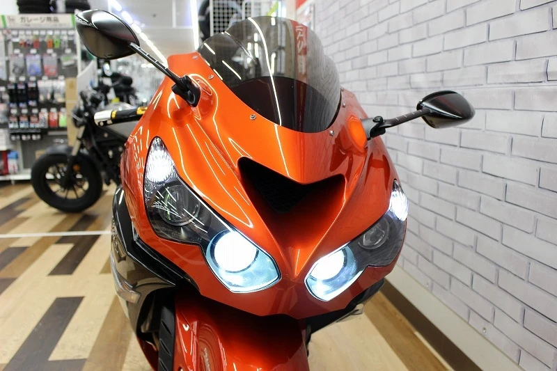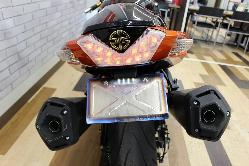 ゲイルスピード前後ホイール、ゲイルスピード左右マスターシリンダー、ETC、USB、ラジエーターコアガード、マルチバー、スモークスクリーン、LEDヘッドライト、BabyFaceバックステップ、シングルシートカウルその他カスタムあり