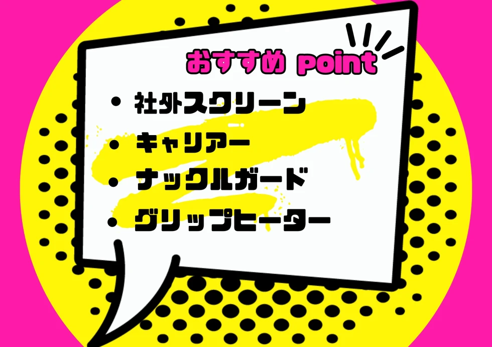 ・スクリーン・ナックルガードでツーリングも快適に