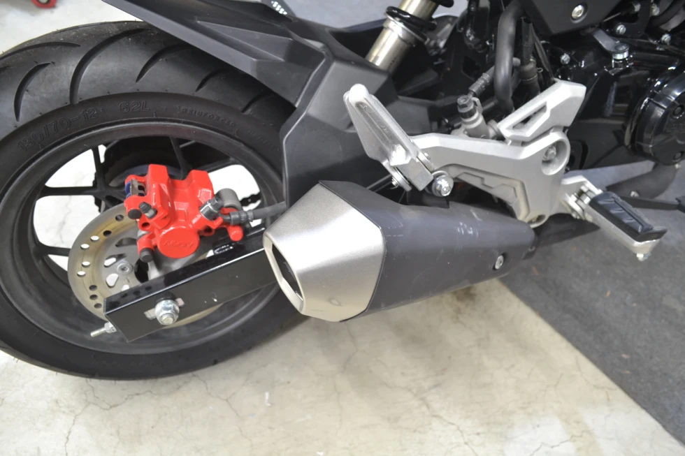 ロスホワイト/レッドの派手目なカラー、ブレーキキャリパーの赤の差し色も相まってとてもスポーティ!!