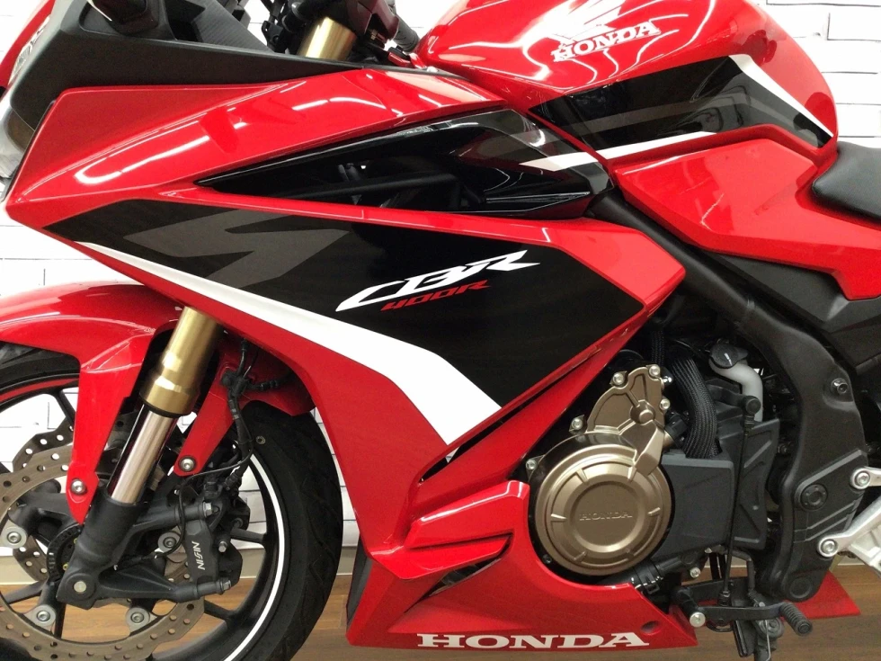 【車両特徴】マイナーチェンジを受けフロントブレーキはダブルディスクに、フロントフォークは正立から倒立になりよりレーシーになったCBR400R!