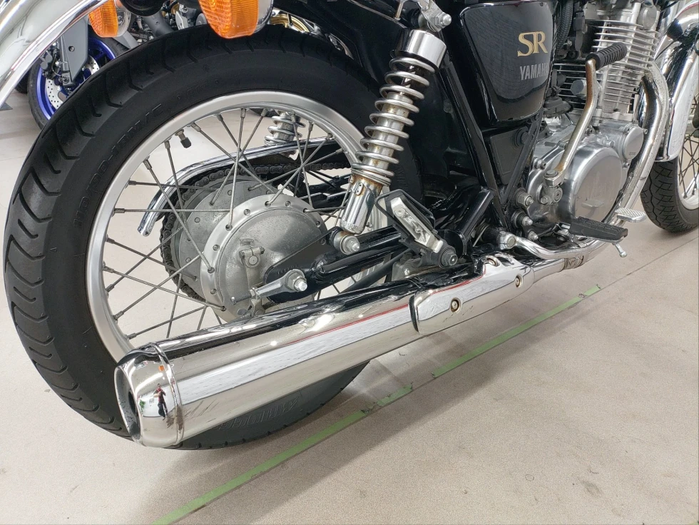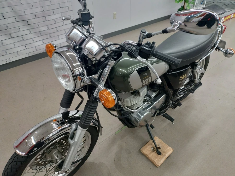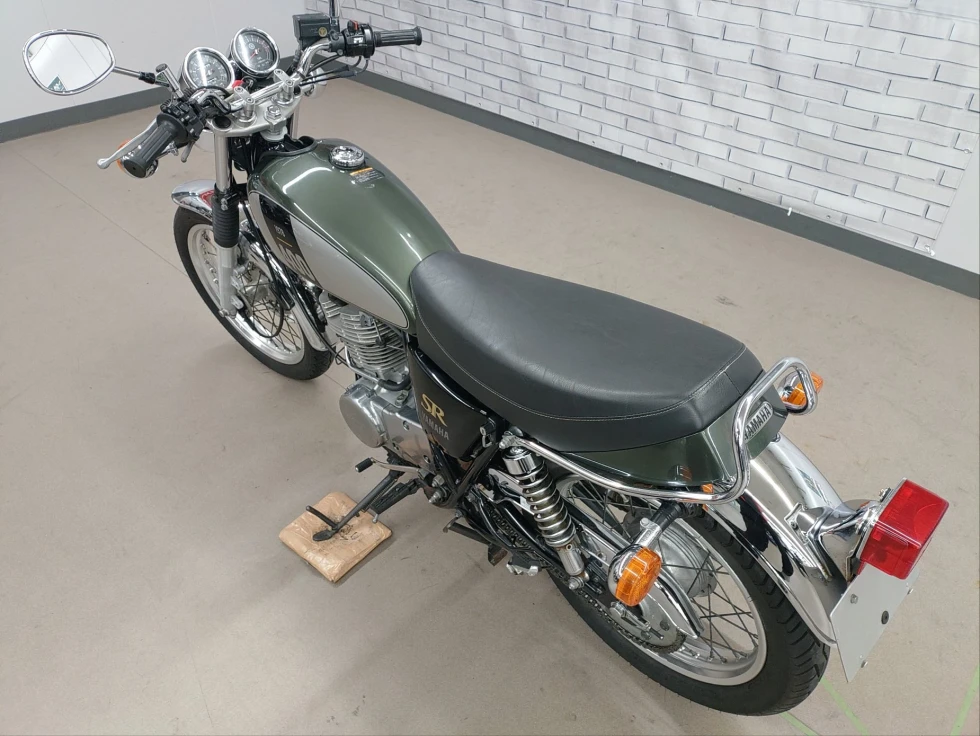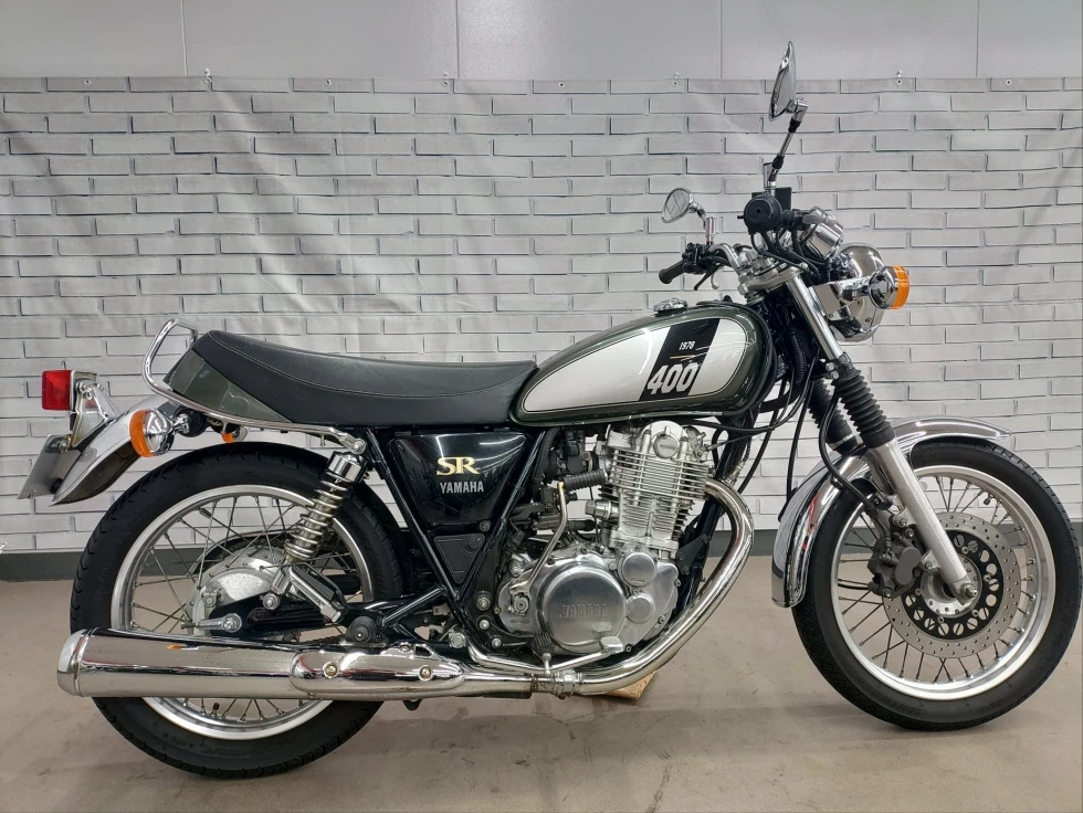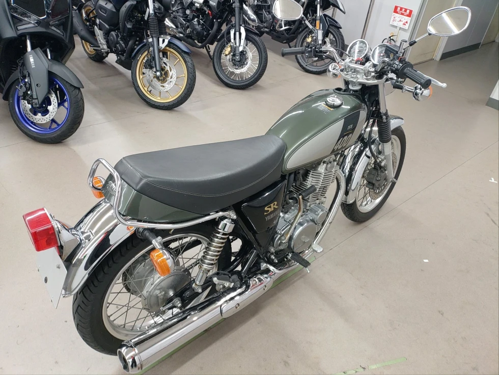 2017年モデル SR400展示中です。1978年から幾度の生産休止になりながらも復活したSR400。2010年からFI採用となるものの、デコンプを要いた独特なキックエンジンスタートのみのSRのアイデンティティを貫いた1台です。ワンオーナー、安心のノーマルお買い得車輌です!!!