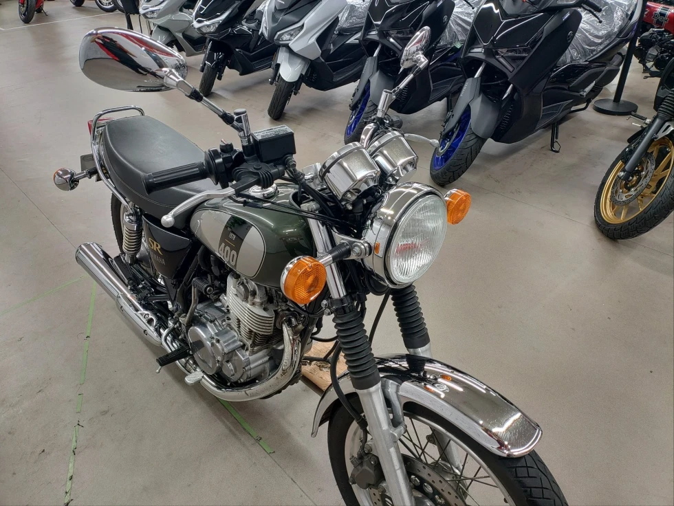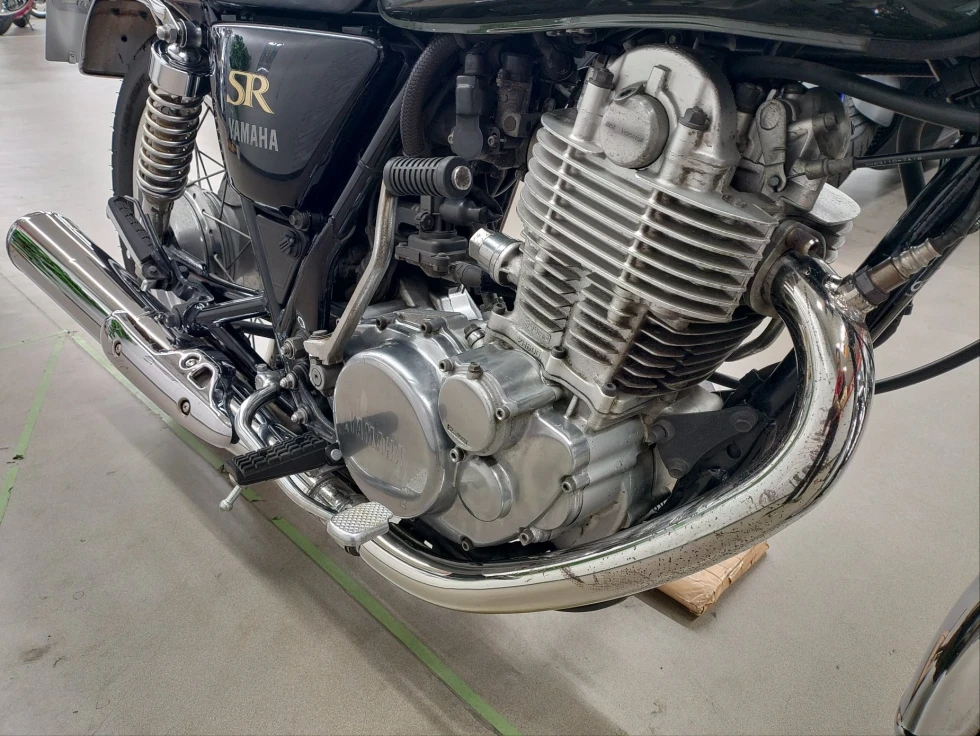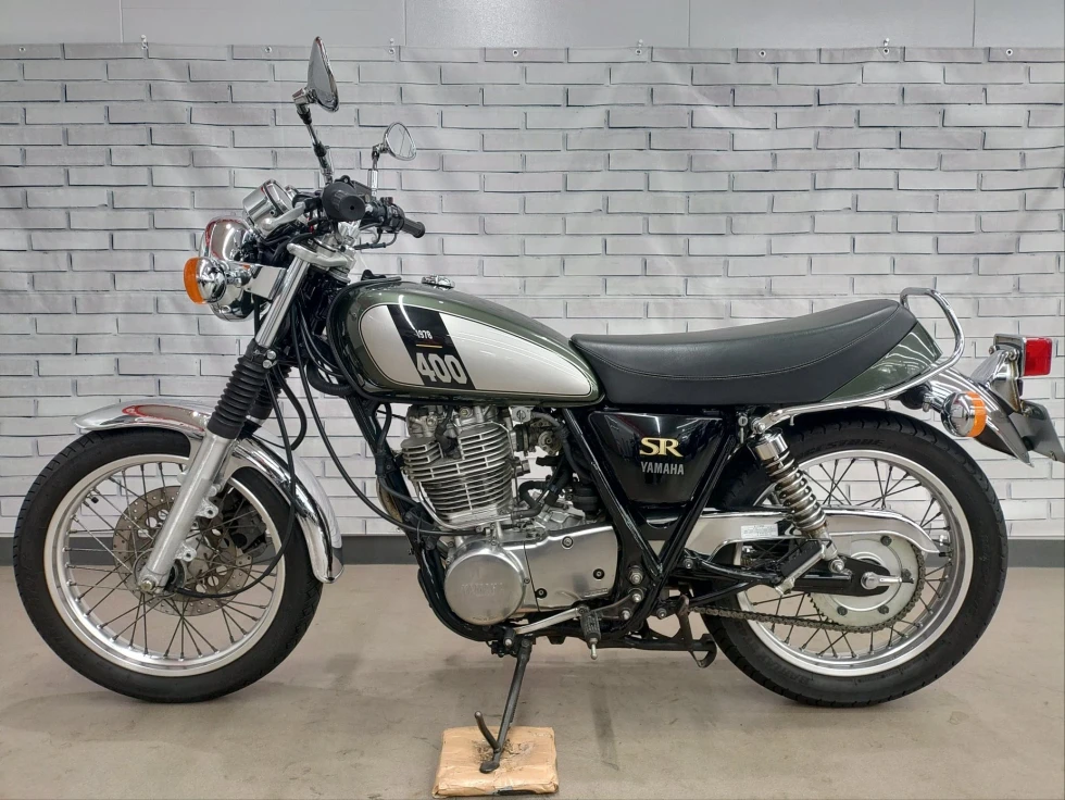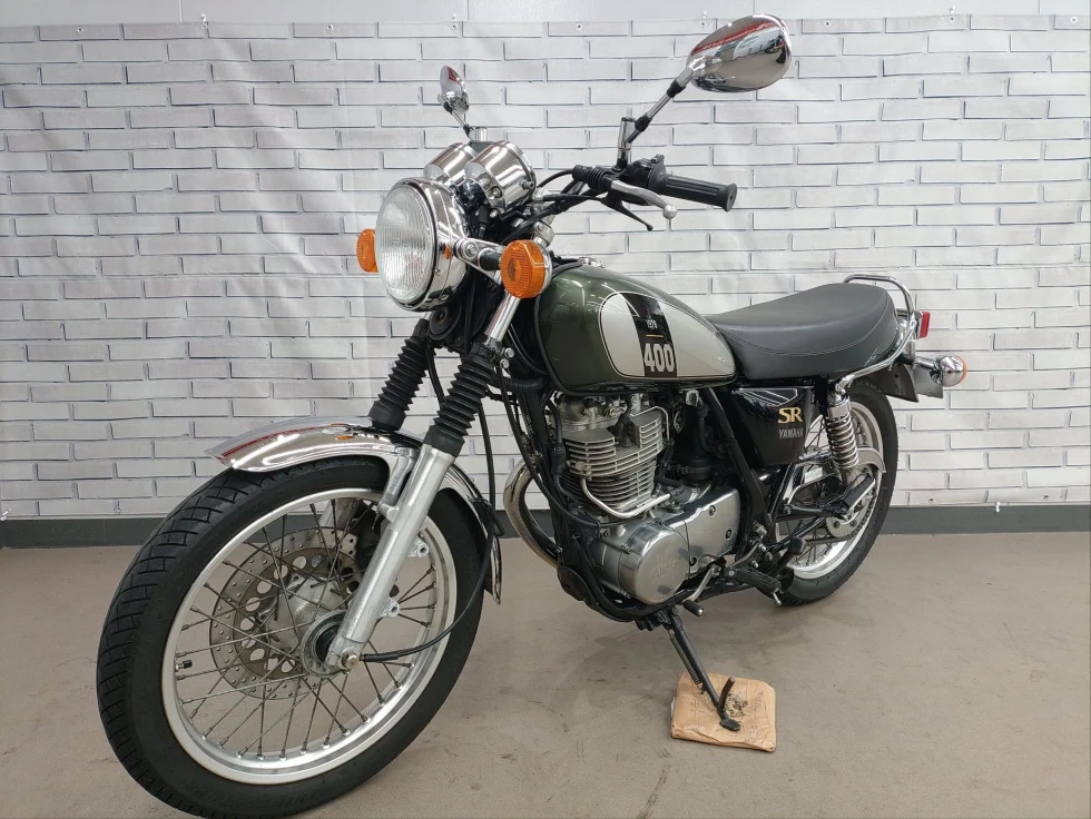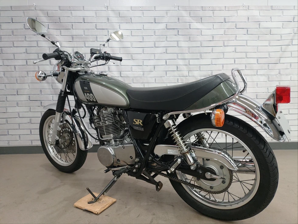 2017年モデル SR400展示中です。1978年から幾度の生産休止になりながらも復活したSR400。2010年からFI採用となるものの、デコンプを要いた独特なキックエンジンスタートのみのSRのアイデンティティを貫いた1台です。ワンオーナー、安心のノーマルお買い得車輌です!!!