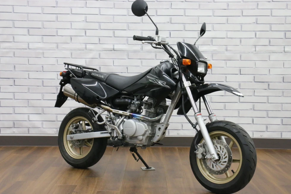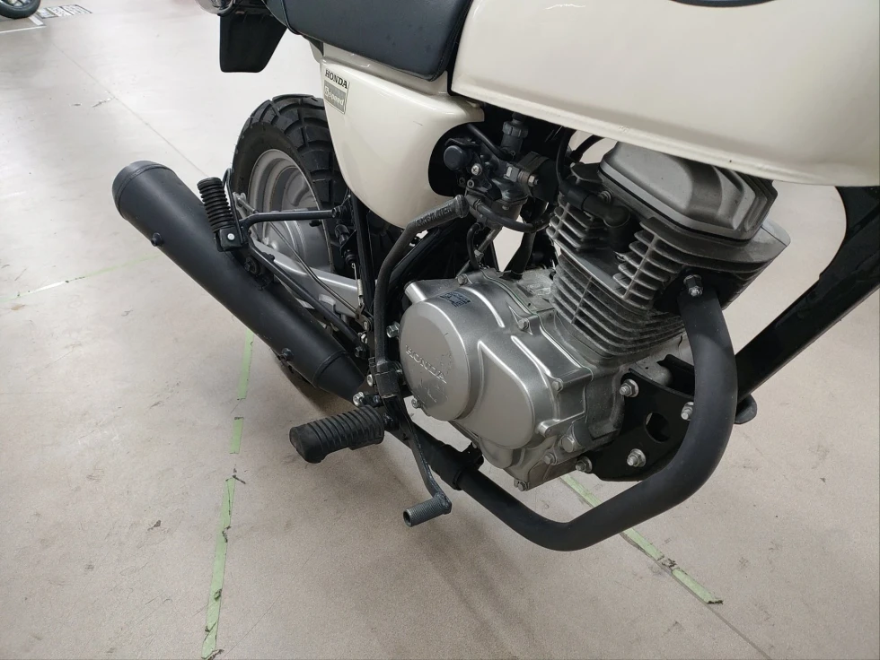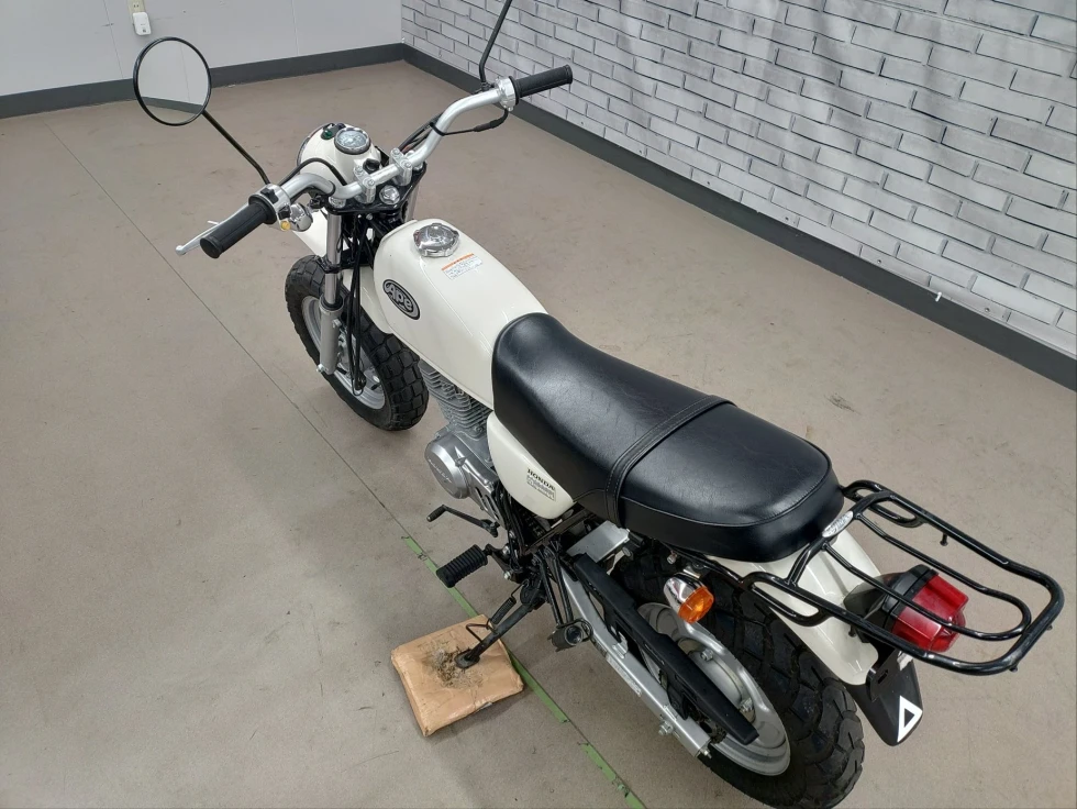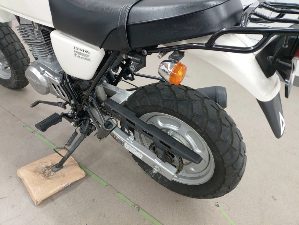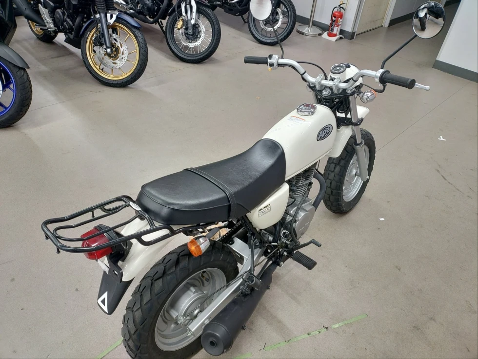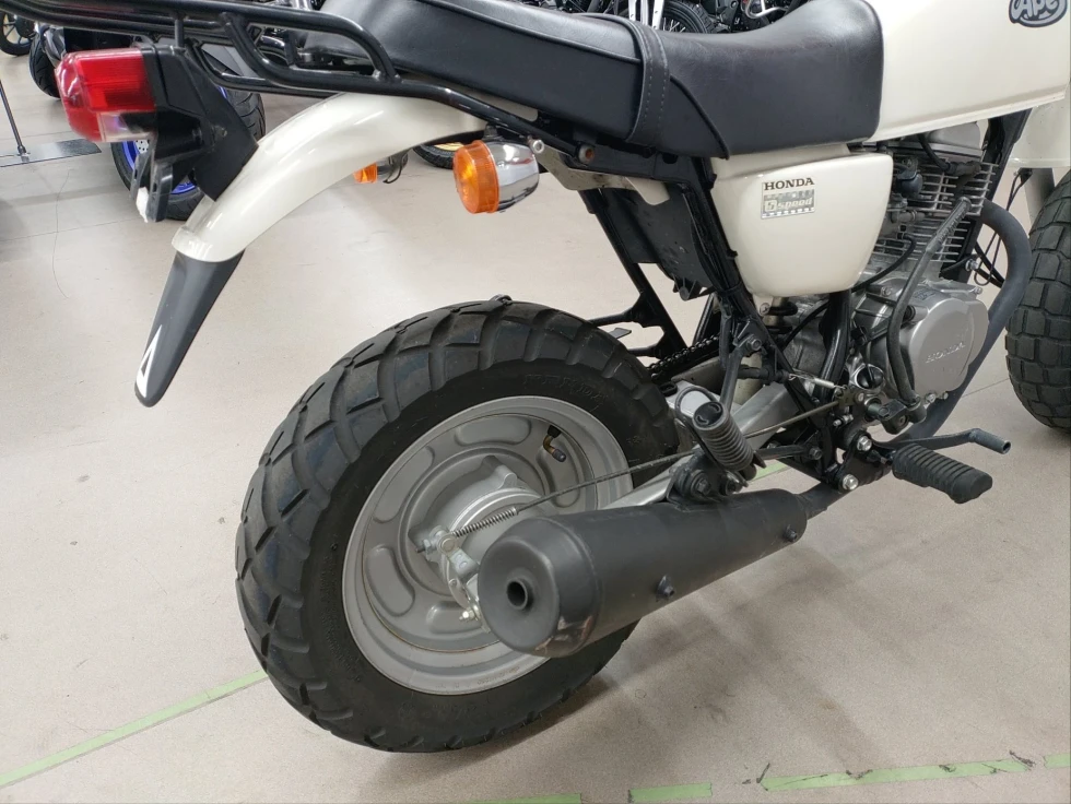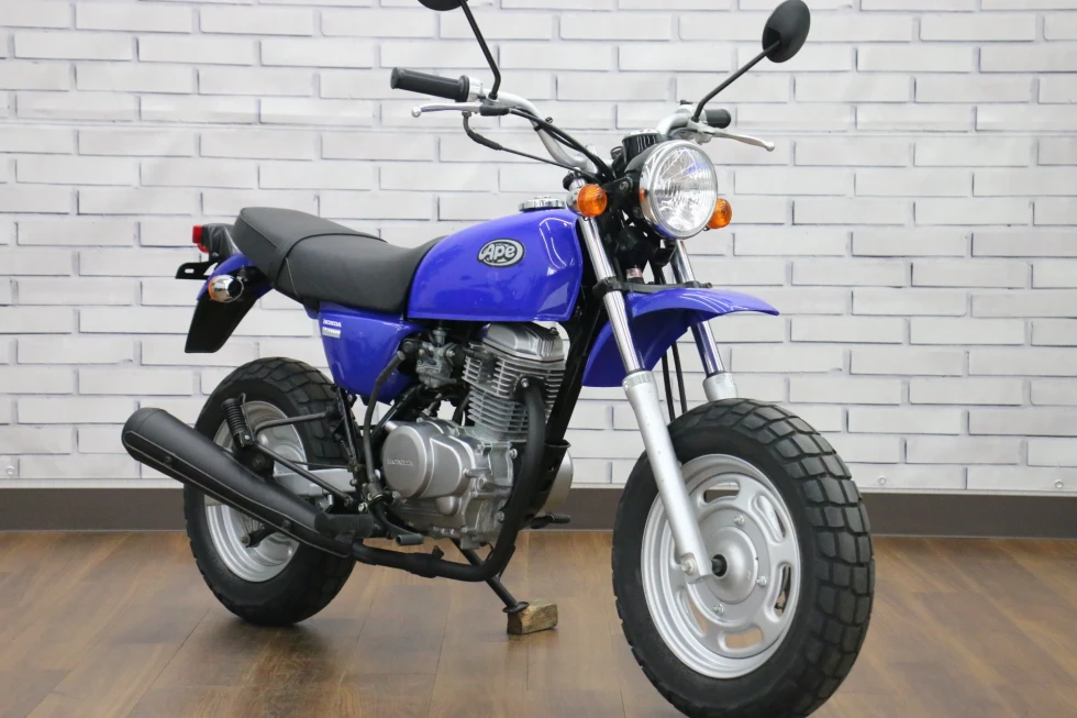 2006年モデル エイプ100 展示中です。2002年に登場した、ギアチェンジの面白さを体感できる、ベーシックスポーツモデル。コンパクトなボディに7psを発揮する空冷単気筒SOHC5MTエンジンを搭載し、バッテリーを必要としないキック始動モデルでシンプルでカスタムし易い1台となっています。便利なキジマ社製キャリヤ付き今となっては希少な1台です!!!