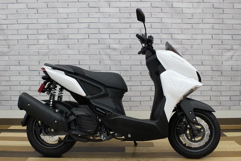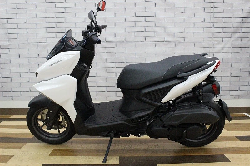 YAMAHA「X-FORCE」2022年モデルです。可変バルブ機構を搭載した街乗りから高速走行まで幅広く対応できる、汎用スクーターです。足元がフルフラットで乗降りも楽にできます!