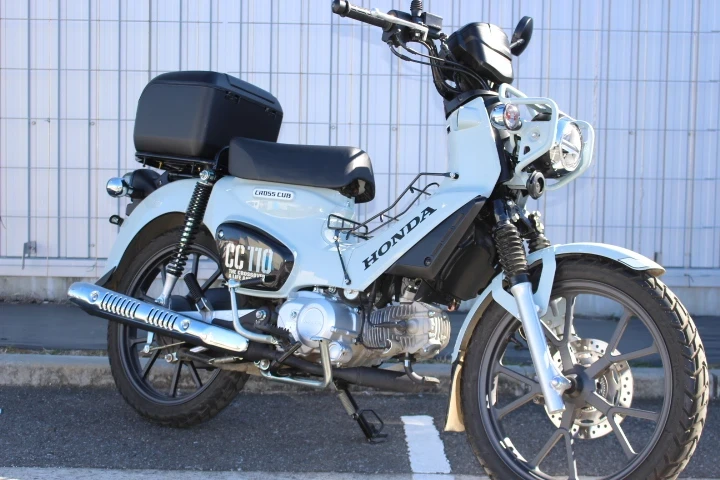 ホンダ・クロスカブ110(CROSS CUB 110)は、スーパーカブ110をベースに“アウトドアテイスト”を強めた派生モデルです。街乗りからキャンプ・林道ツーリングまで対応できる万能さと、無骨でタフなデザインが特徴です(^○^)/ 走行距離が少なくオススメ車両となっております!