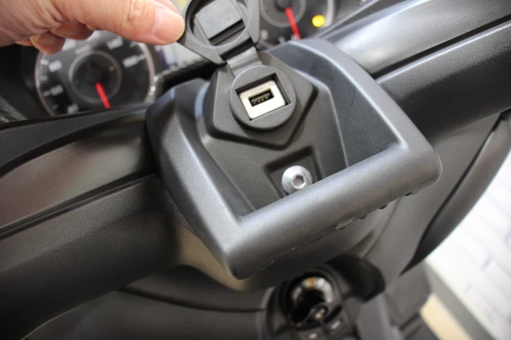・スマホホルダーもそのまま装着可能なユニバーサルステー&USBソケット付き!
