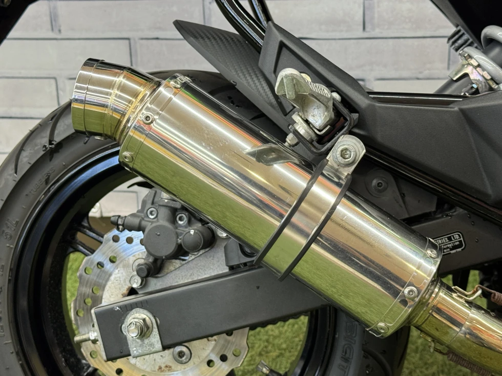 社外マフラーならではの心地よいサウンドと、スポーティな見た目が魅力のカスタムポイント!