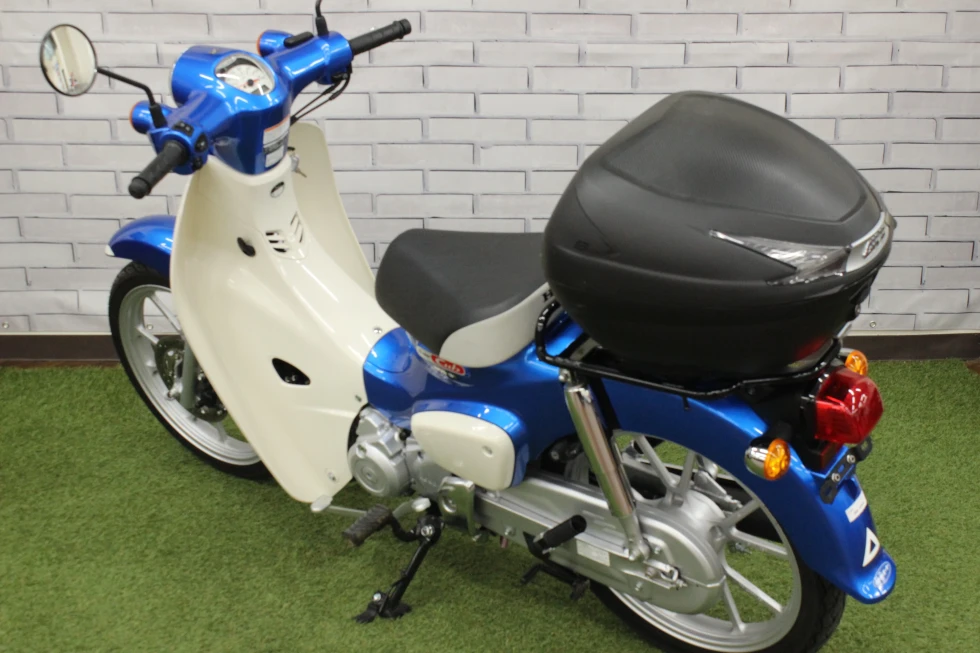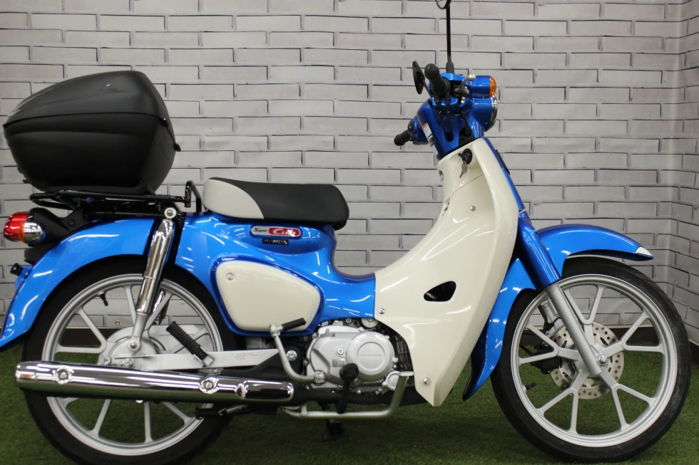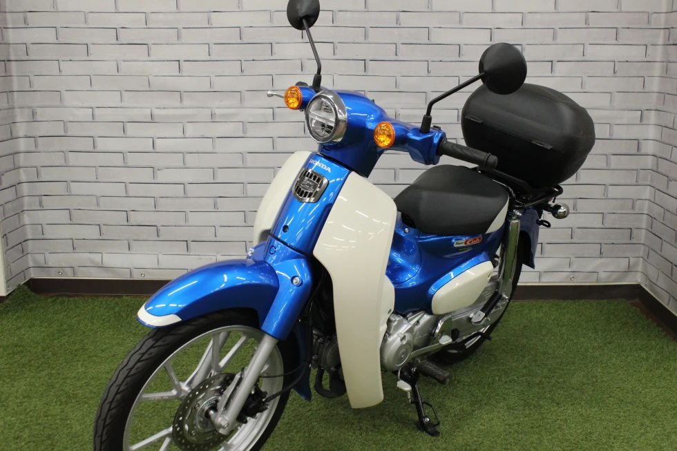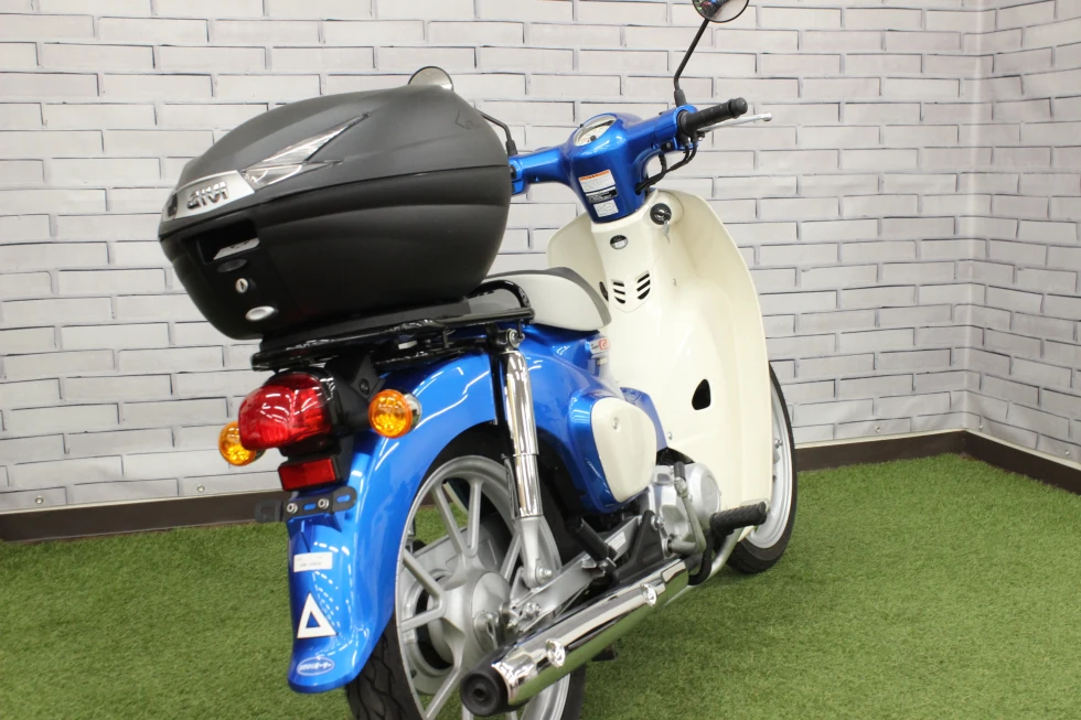 綺麗な青が映えるスーパーカブ110!走行距離も僅か1000kmほどで慣らし運転がやっと終わった位です。通勤・通勤・遊びに大活躍!四日市店は様々なカブがありますので是非お気に入りの車両を